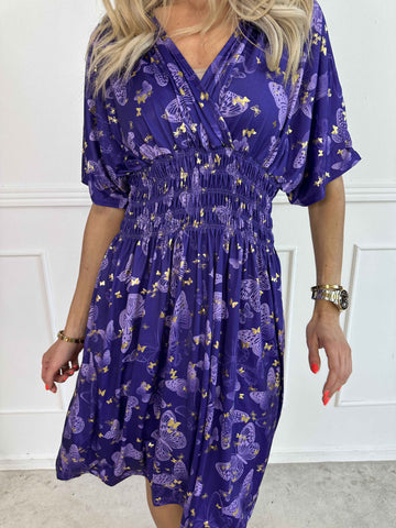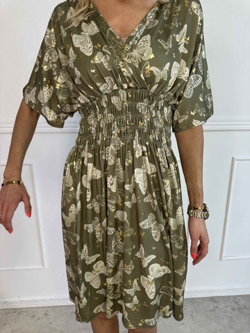 Pams Dust - Elastisk kjole med sommerfugle og guld støv