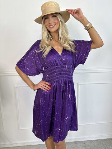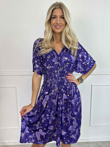 Pams Dust Short - Elastisk kjole med sommerfugle og guld støv