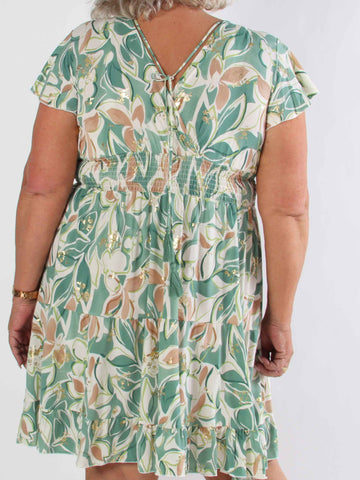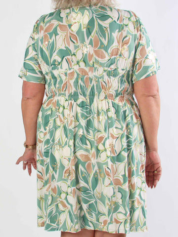 Pamina Leaf Short - Kort elastisk plus size kjole med blad motiver