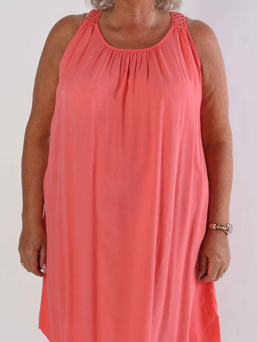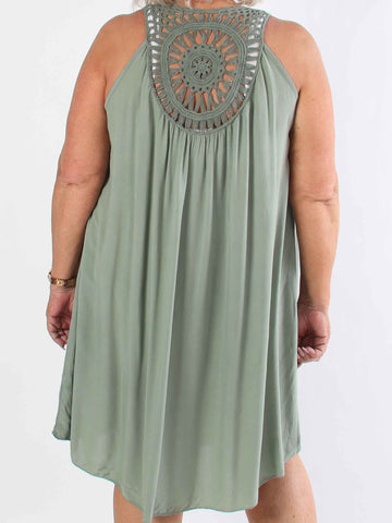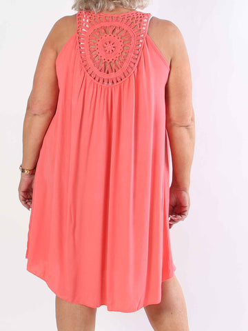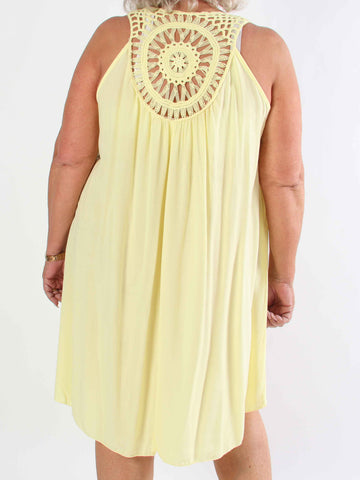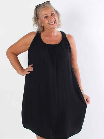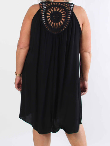 Medea - Simpel plus size sommerkjole i viskose med broderet ryg