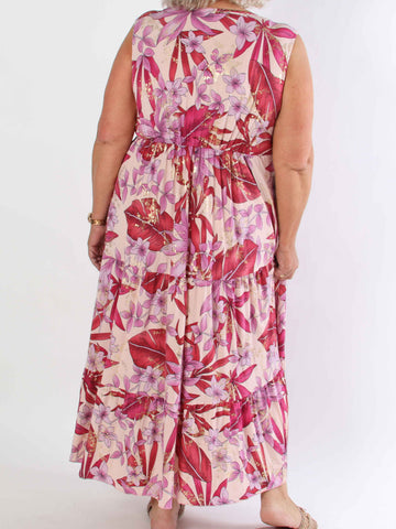 Karini - Elastisk blomstret plus size kjole med lag på lag look