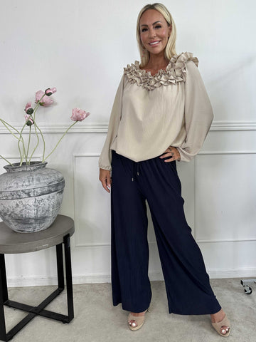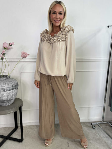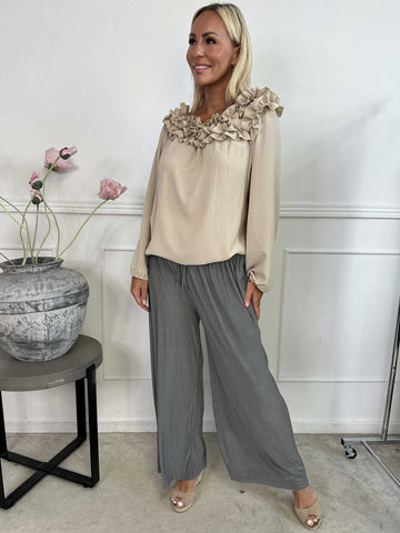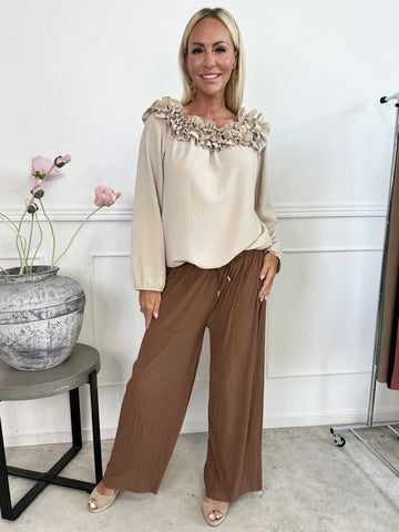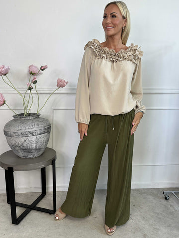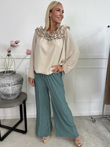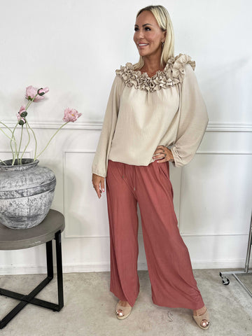 Angeline - Løse plisseret bukser med elastikkant i livet