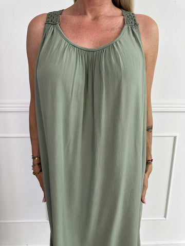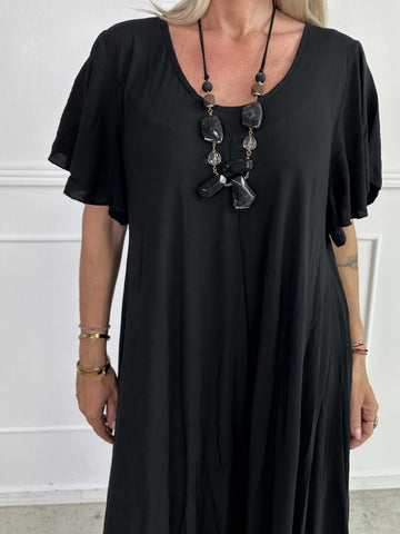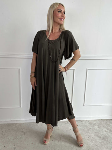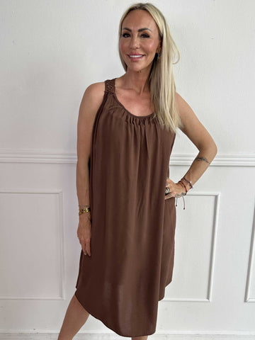 Chalkis - Plus size kjole i blød viskose med flettet stropper