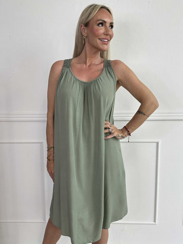 Medea - Simpel sommerkjole i viskose med broderet ryg
