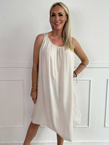 Miravi Sparkle - Løs kjole i elastisk stof med similisten