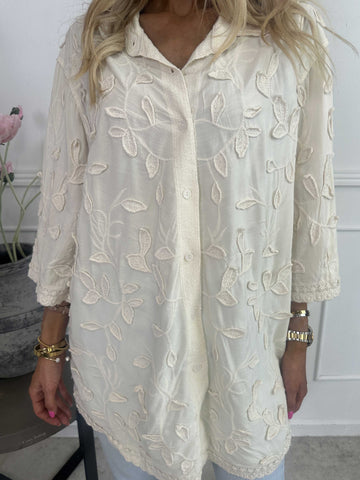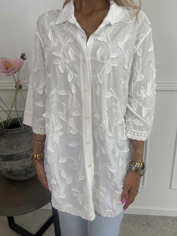 Mette - Skjorte i blød bomuld med fine bladmotiver