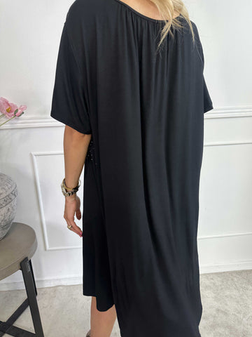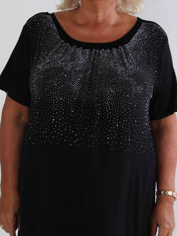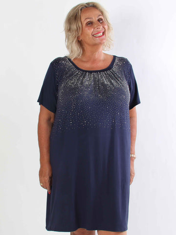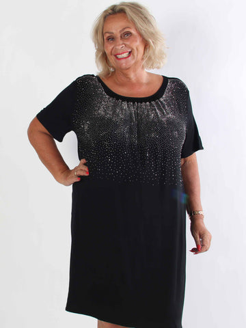 Miravi Sparkle - Løs plus size kjole i elastisk stof med similisten