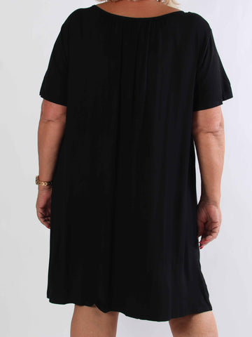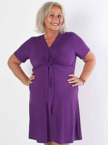 Molly Plain Short - Elastisk plus size kjole med fin knudedetalje foran