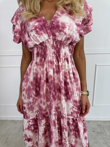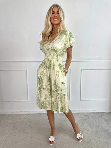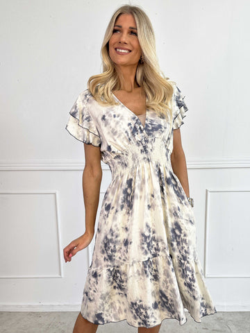 Palina Batik Short - Mønstret kjole i viskose med smock