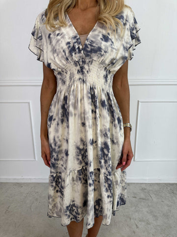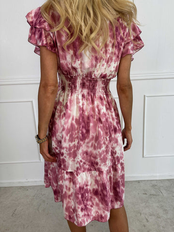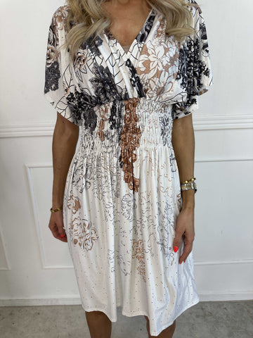 Palmira - Mønstret elastisk kjole med lag på lag look