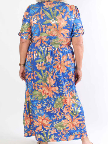 Maira Botanic - Elastisk plus size kjole med blomsterprint og smock