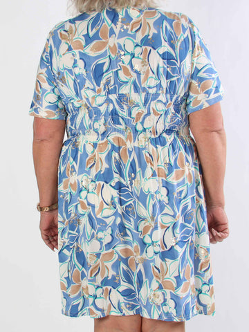 Pams Blossoming Short - Elastisk mønstret plus size kjole med smock