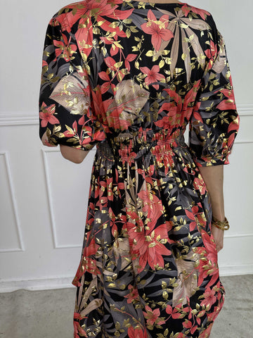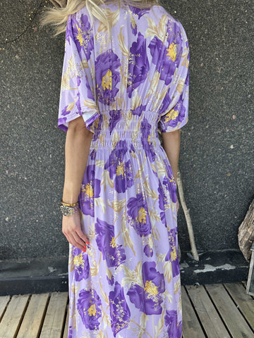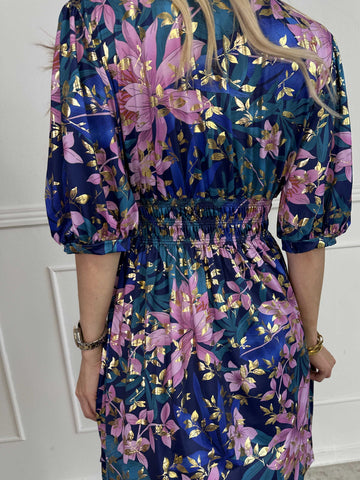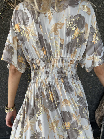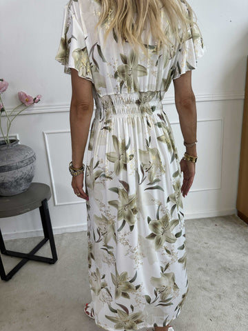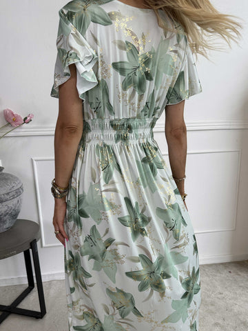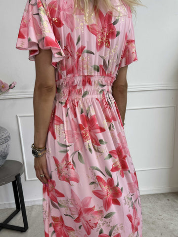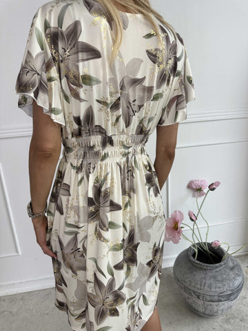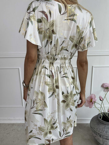 Pams Lilies - Elastisk kjole med lilje motiver og guld detaljer