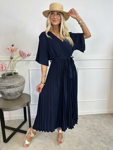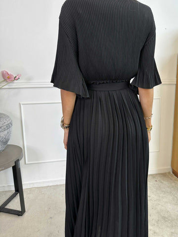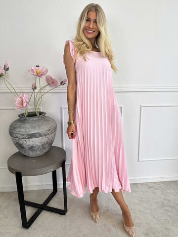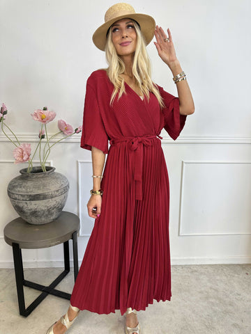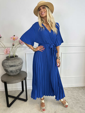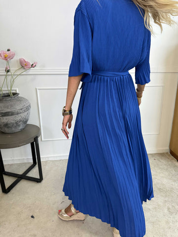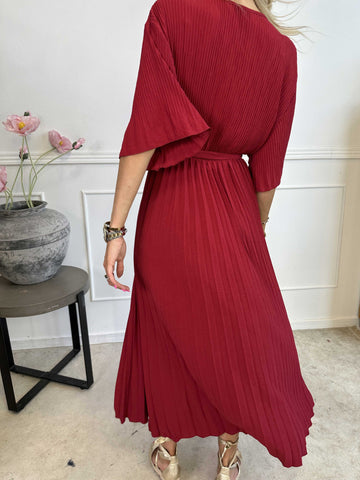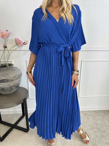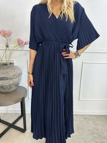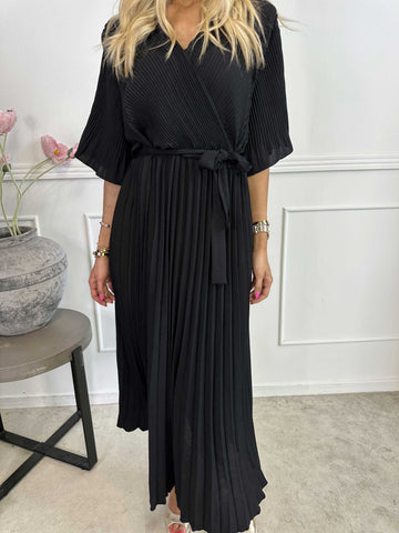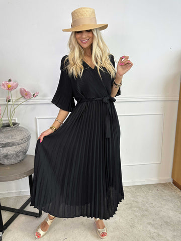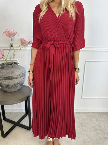 Solveig - Lang plisseret kjole i viskose med bånd i taljen