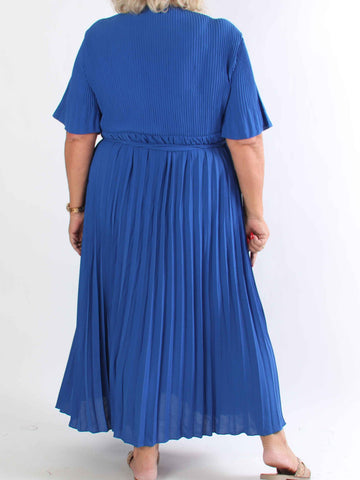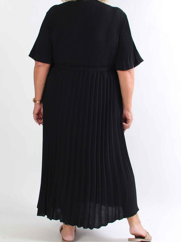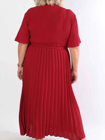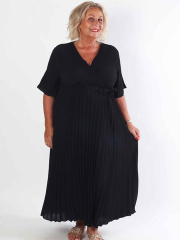Solveig - Lang plisseret plus size kjole i viskose med bånd i taljen