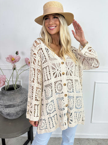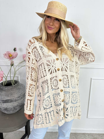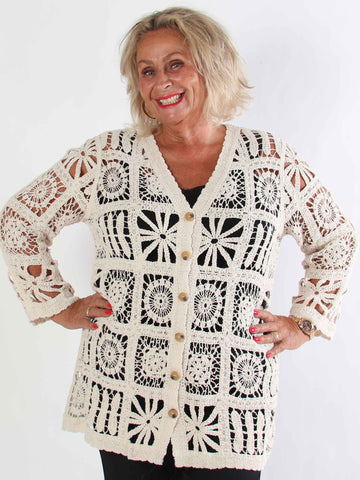 Temari - Hæklet plus size cardigan i bomuld med knapper