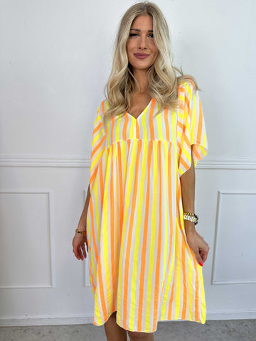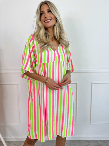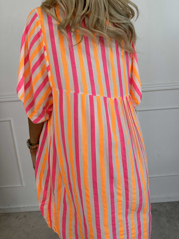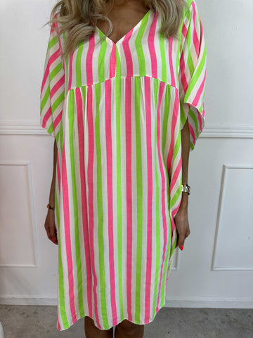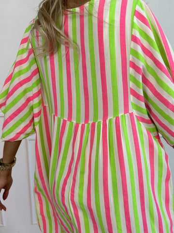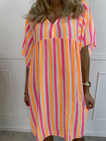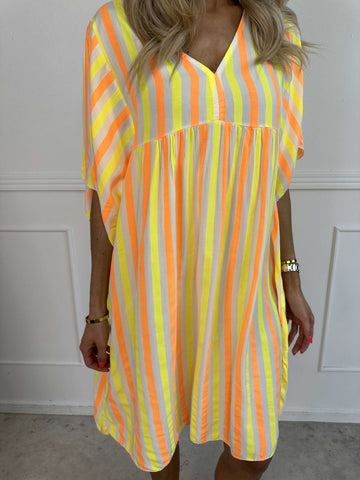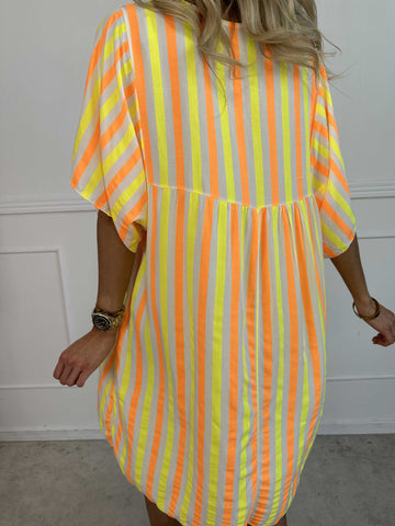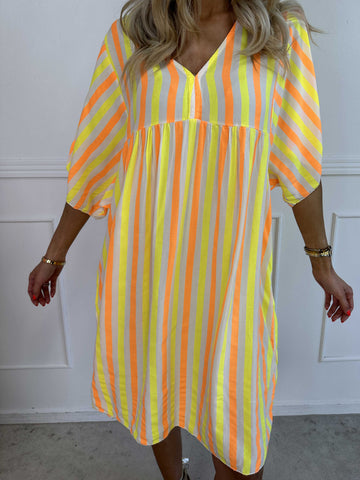Hinata Stripe - Lang stribet kjole i viskose med smock