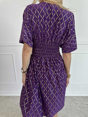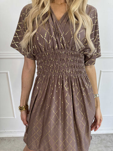 Pams Gold Check Short - Kort elastisk kjole med guld detaljer