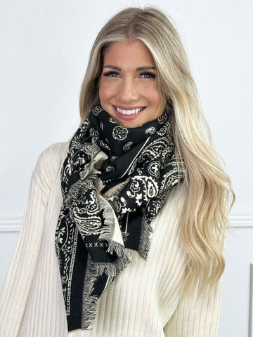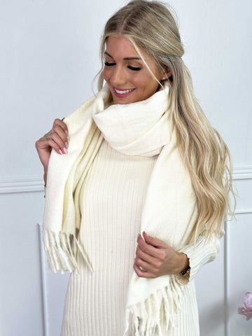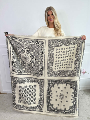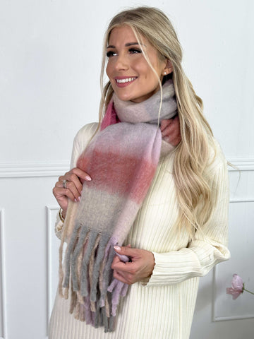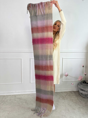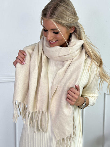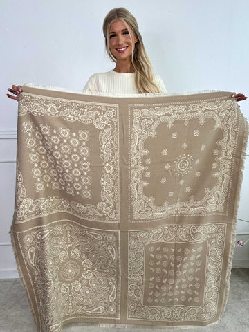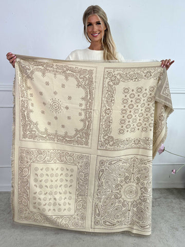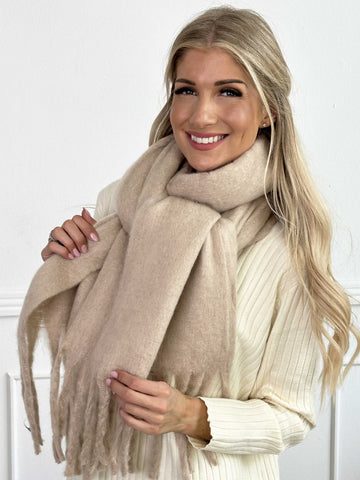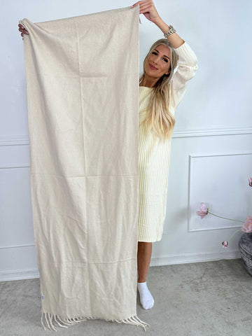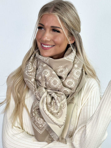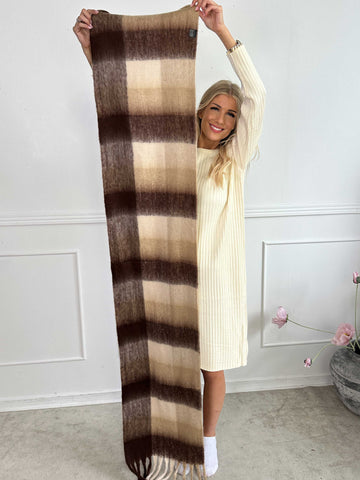 Marianne - Blødt tørklæde i viskose og uld med beige mønster