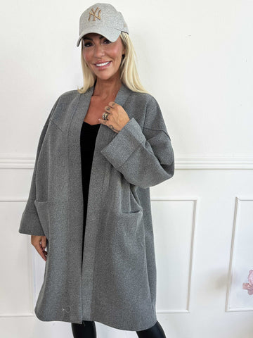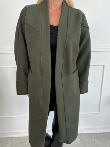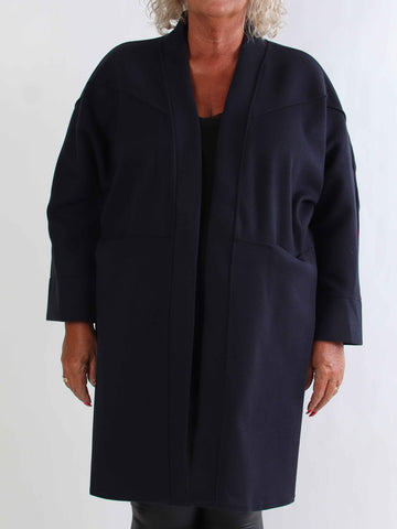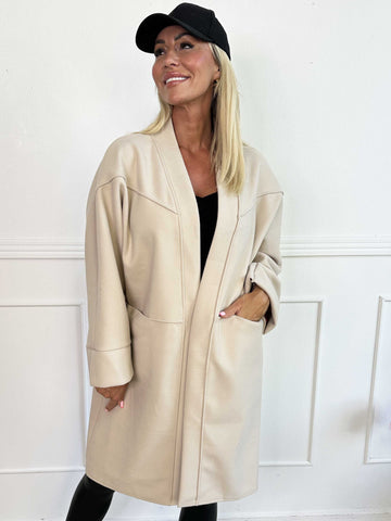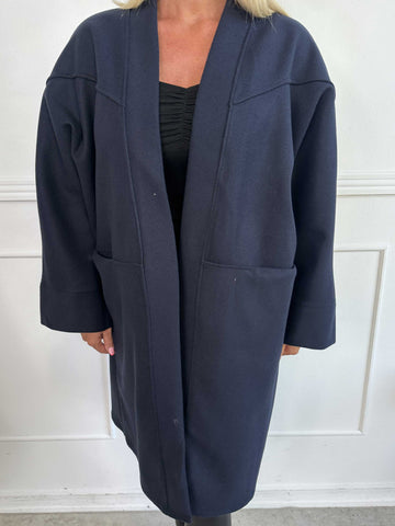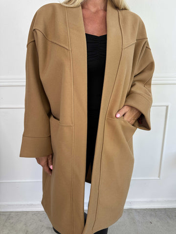 Annah Midi - Oversized frakke med tydelige syninger og lommer