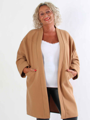 Annah Midi - Plus size frakke med tydelige syninger og lommer