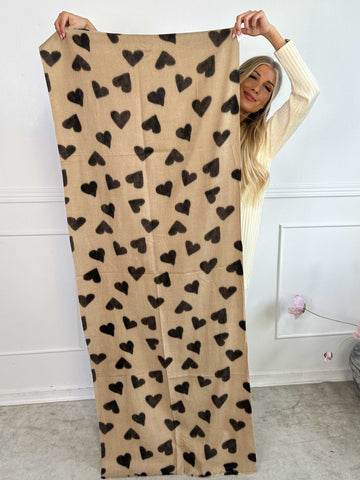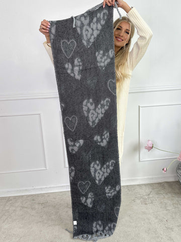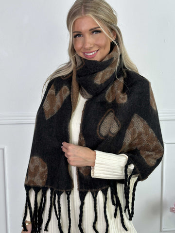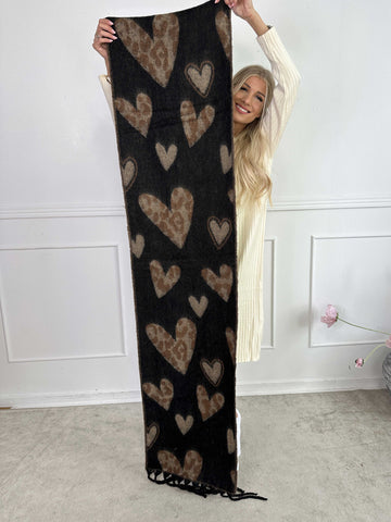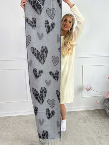 Bellean - Blødt tørklæde med hjerter af leopardprint