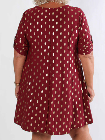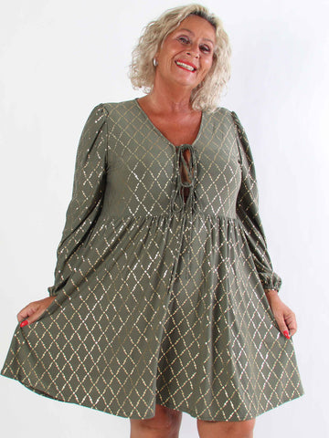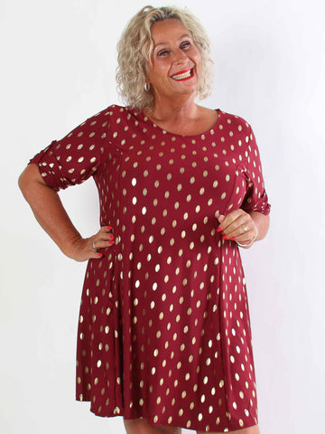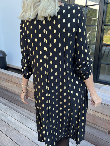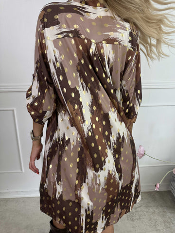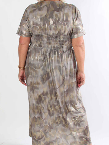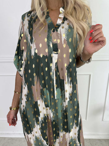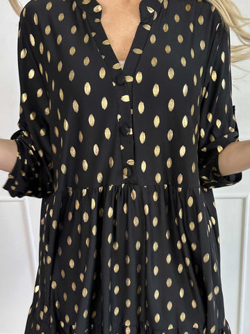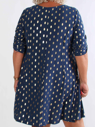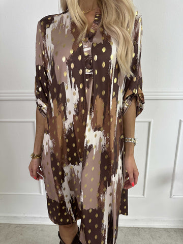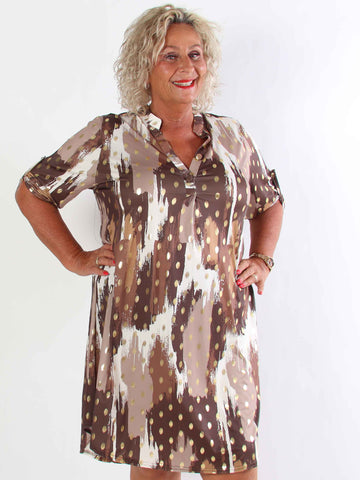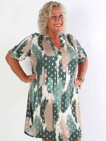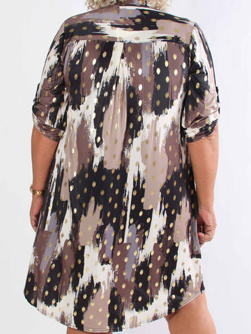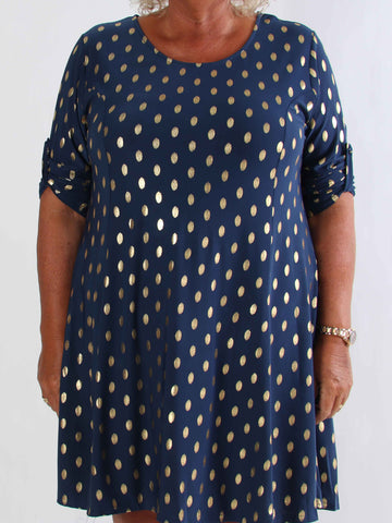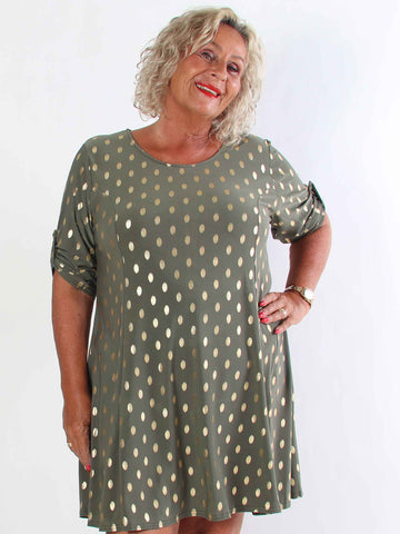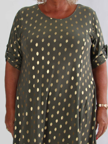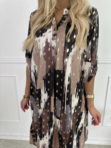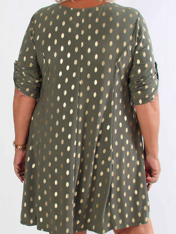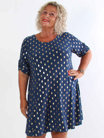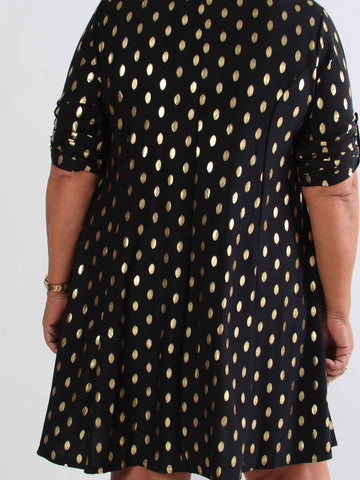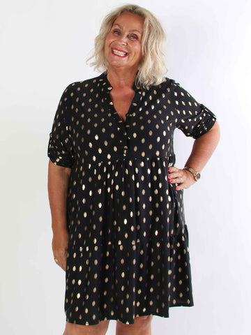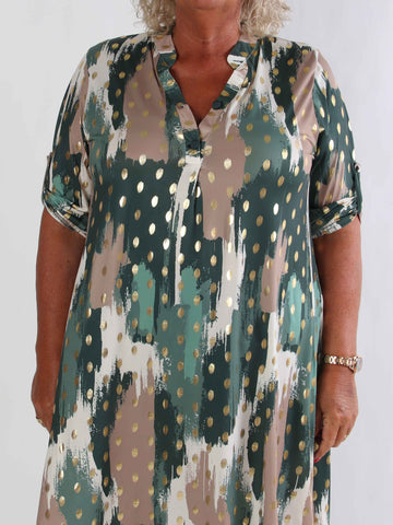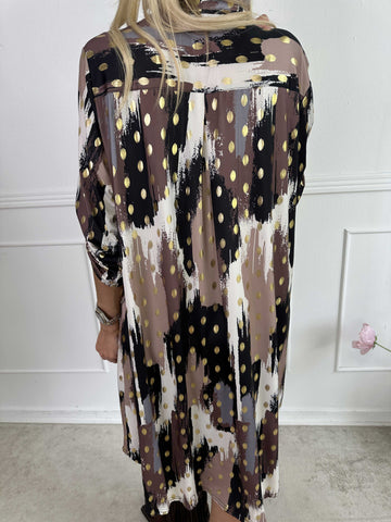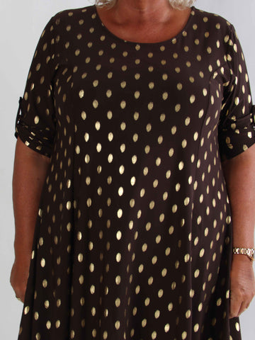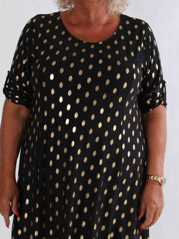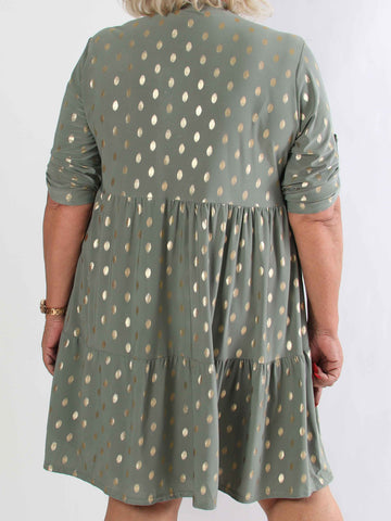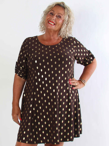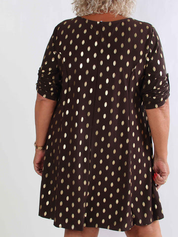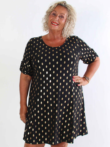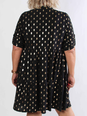 Milano Gold Midi - Plus size kjole med guld dutter og lag på lag look