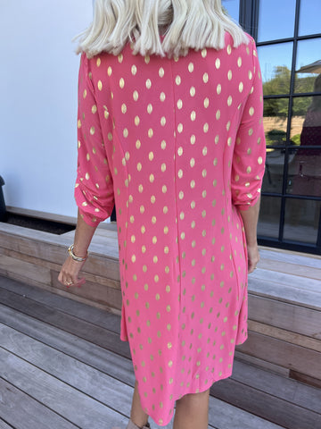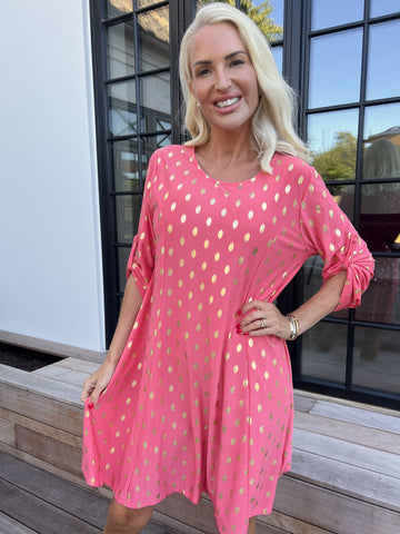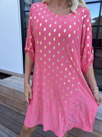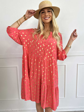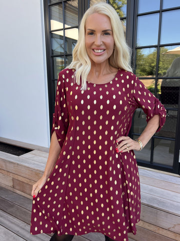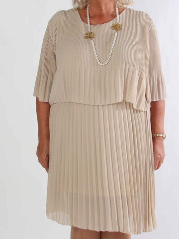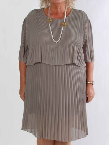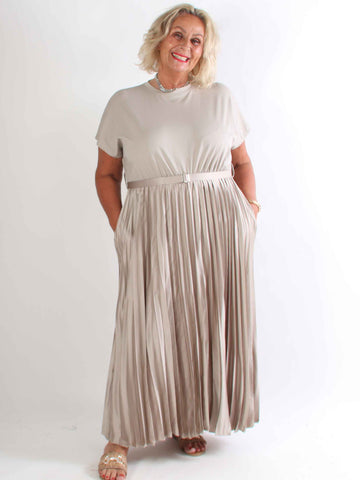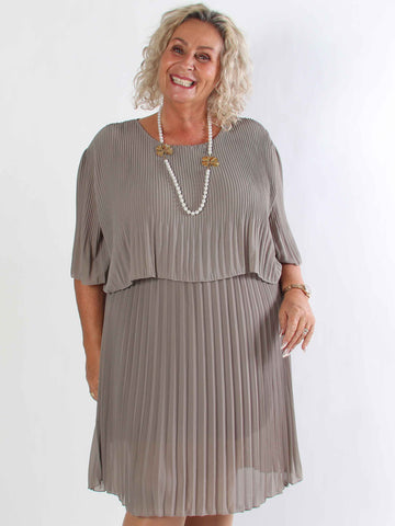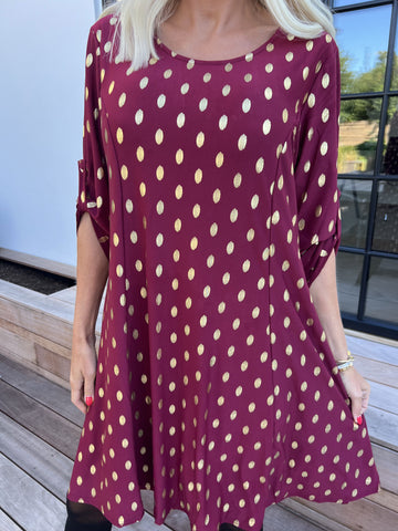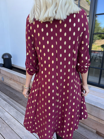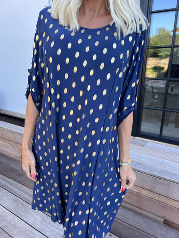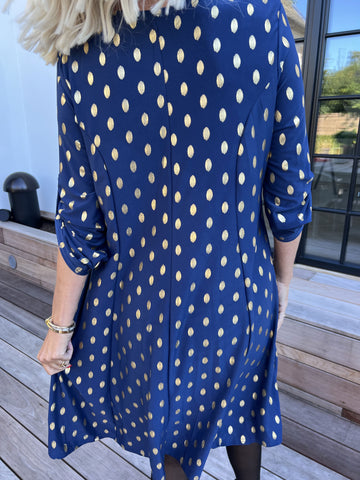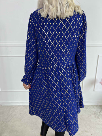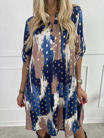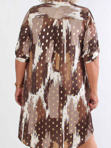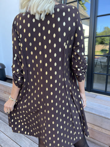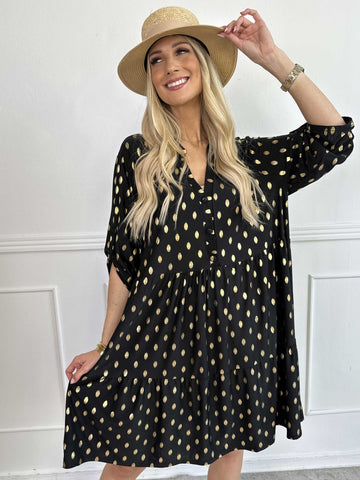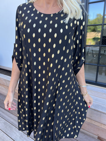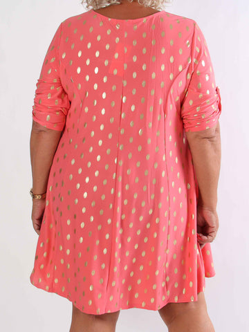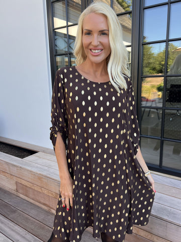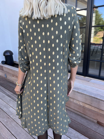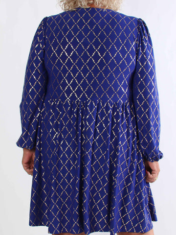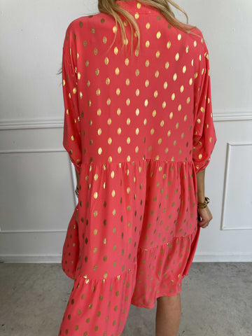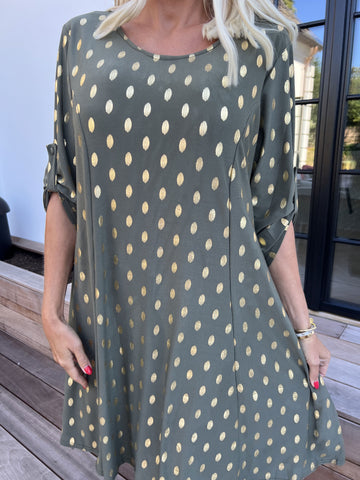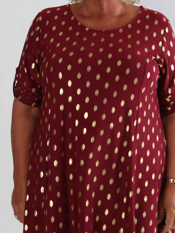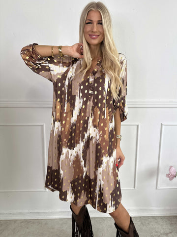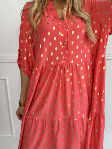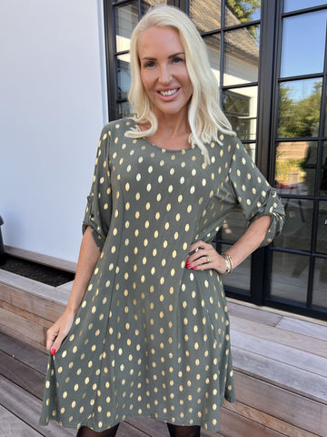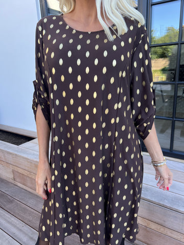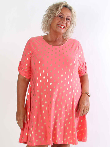 Milano Gold Midi - Plus size kjole med guld dutter og lag på lag look