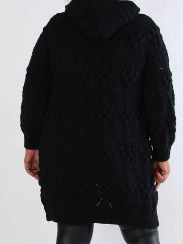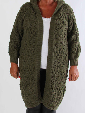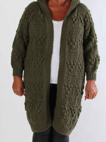 Cronia - Tyk lækker plus size strikcardigan med hætte