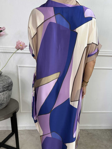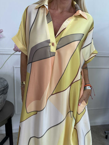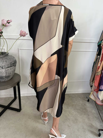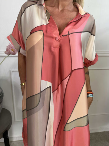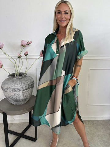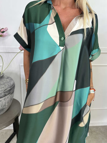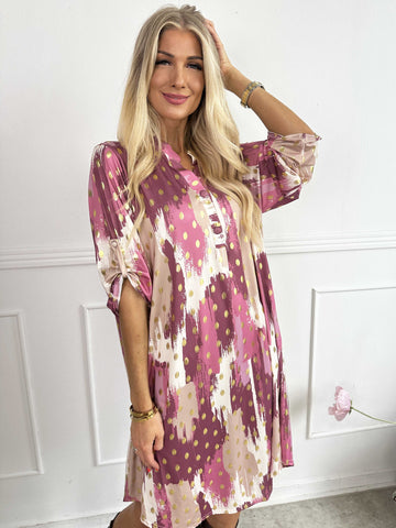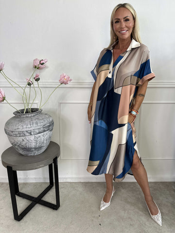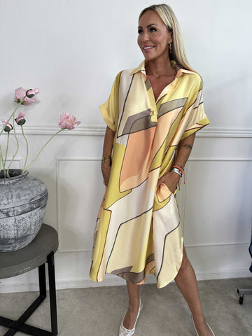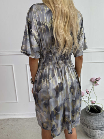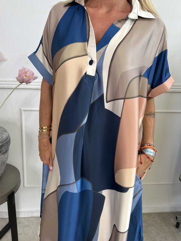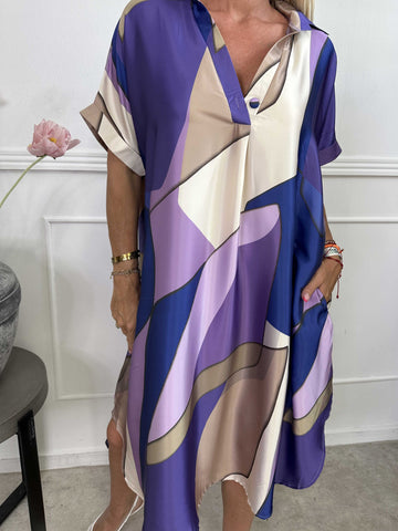 Etlana - Mønstret tunikakjole med korte ærmer og lommer