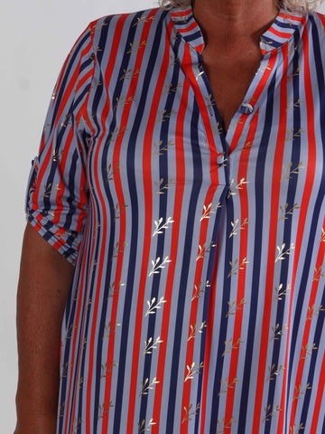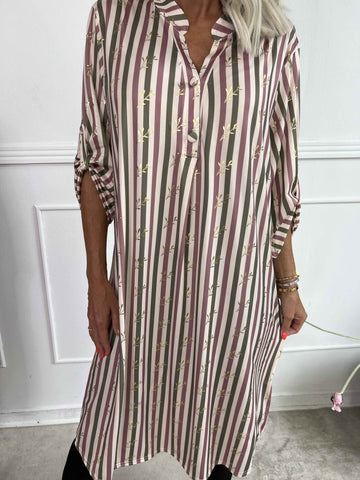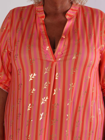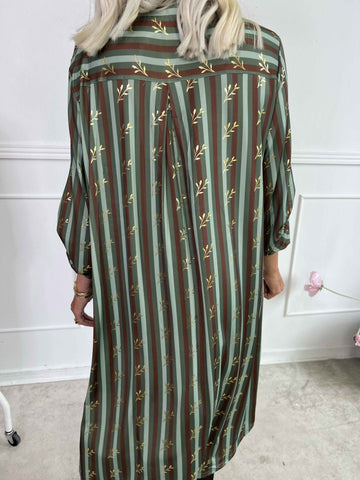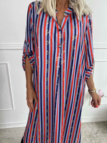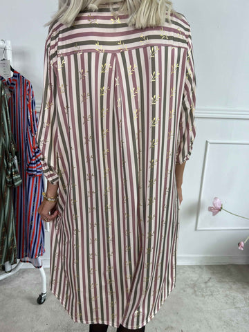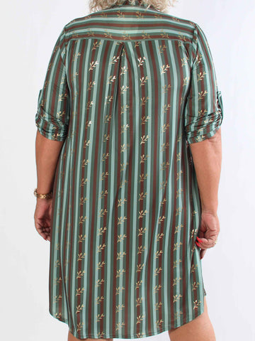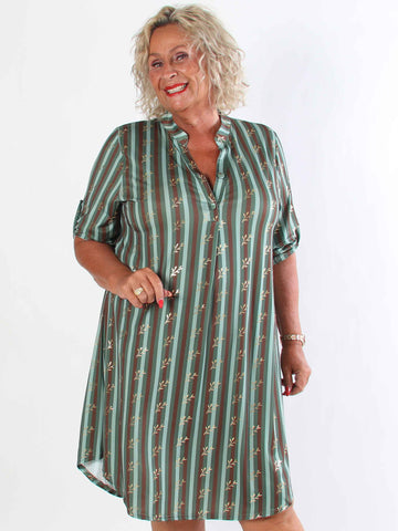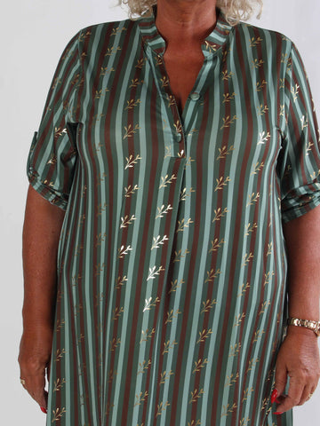 Ebba Stripe Long - Elastisk plus size stribet kjole med guld blade