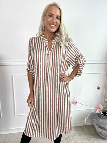 Ebba Stripe Long - Elastisk stribet kjole med guld blade