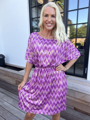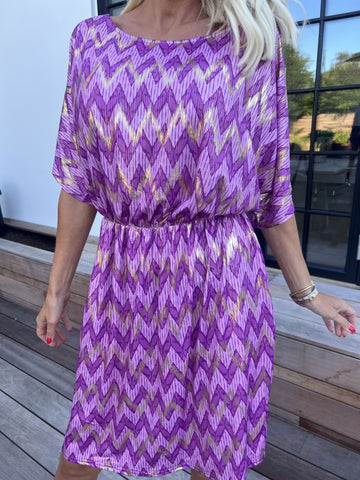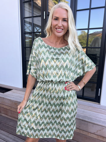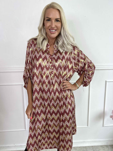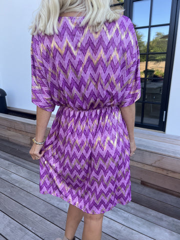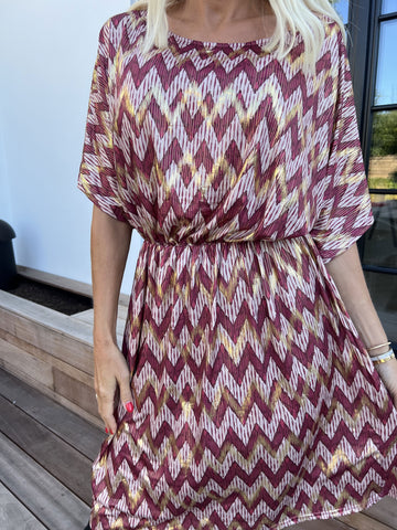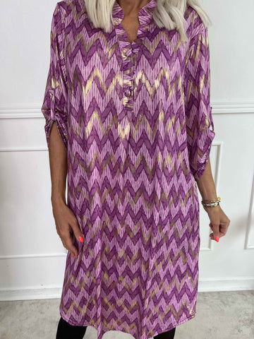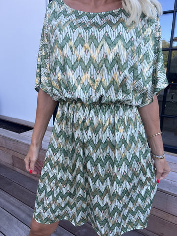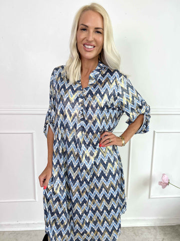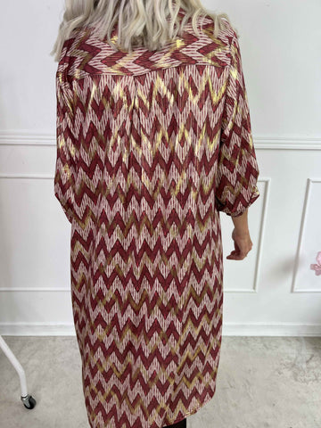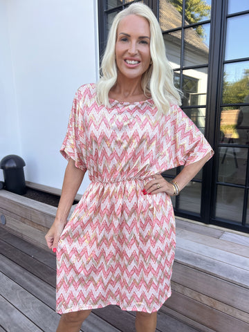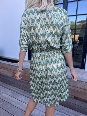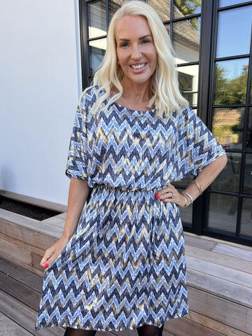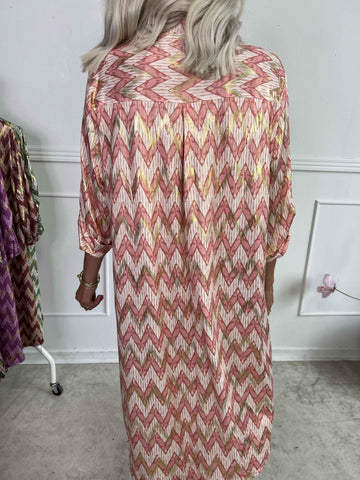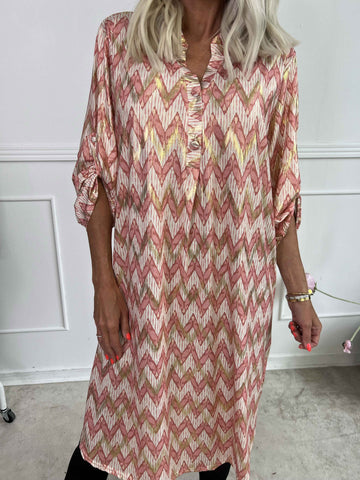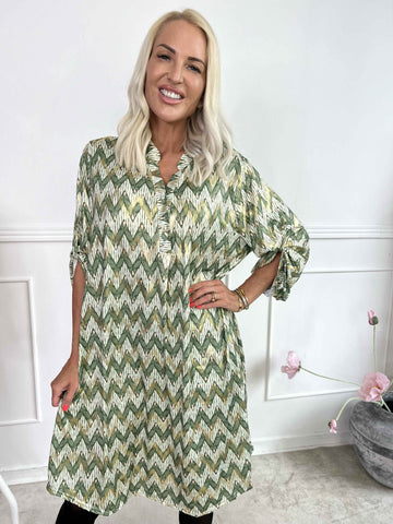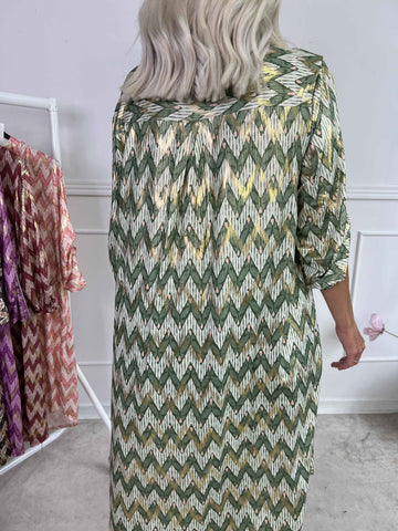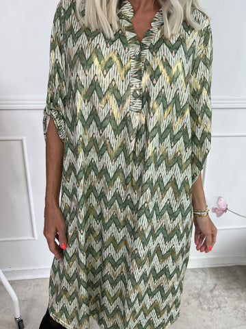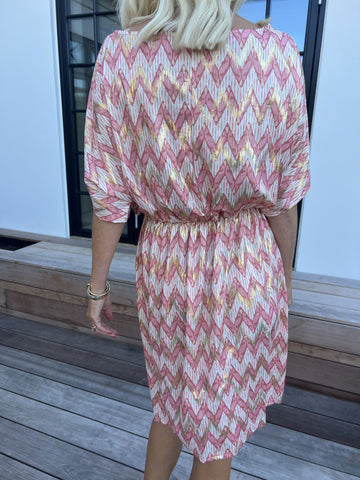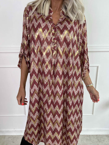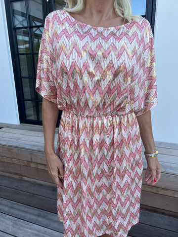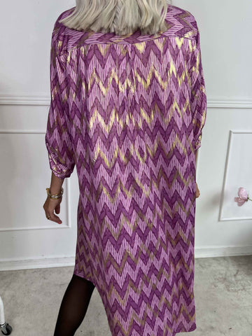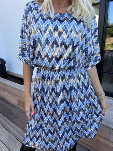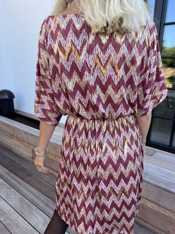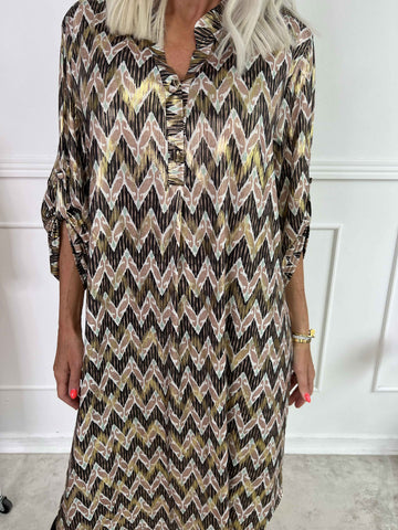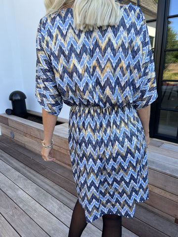 Venus Zigzag - Elastisk mønstret kjole med guld detaljer