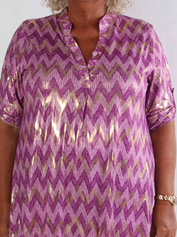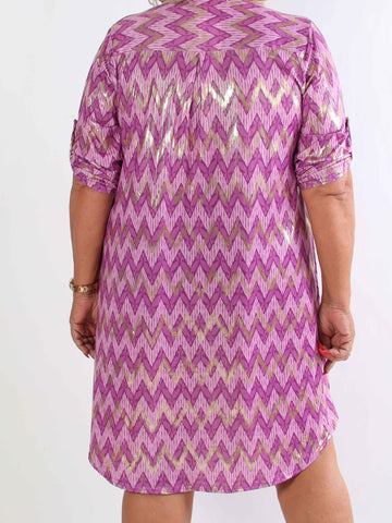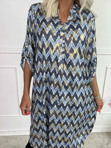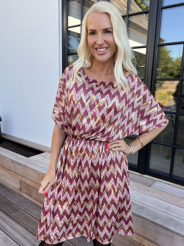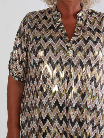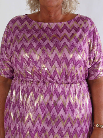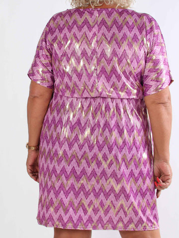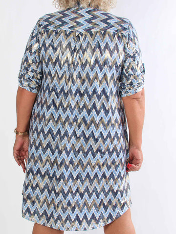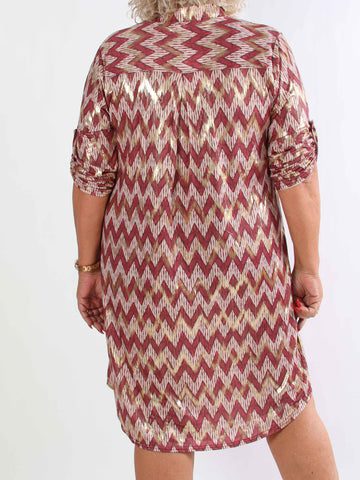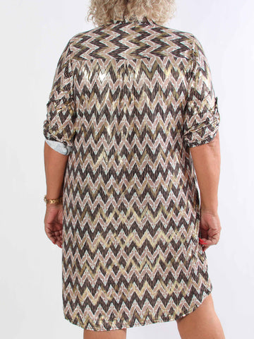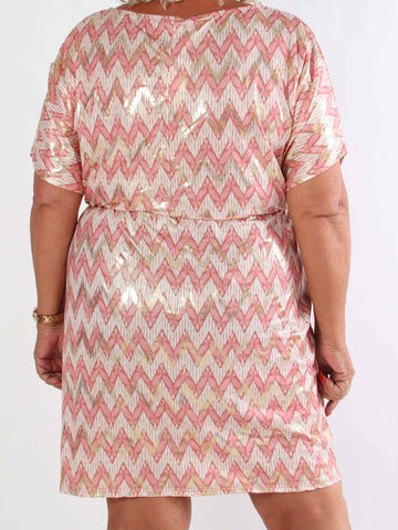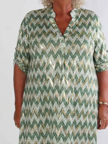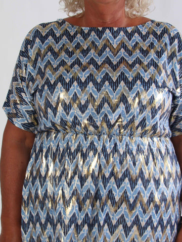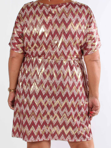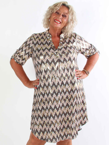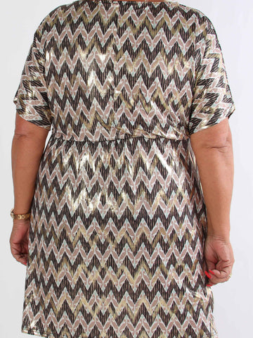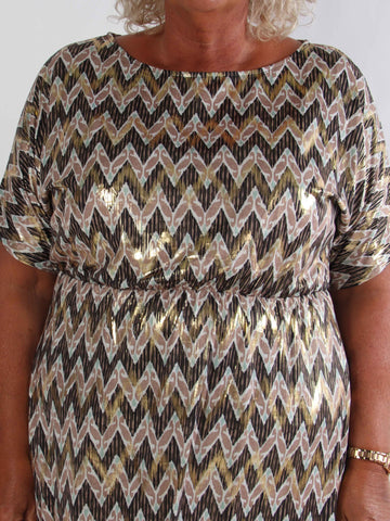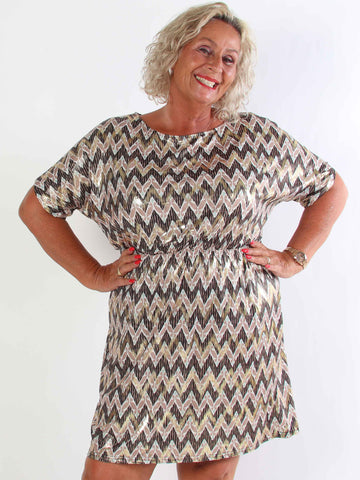 Venus Zigzag - Elastisk mønstret plus size kjole med guld detaljer