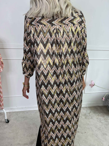 Ebba Zigzag Long - Elastisk mønstret kjole med guld detaljer