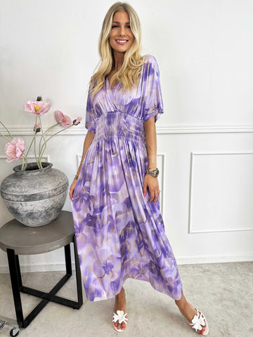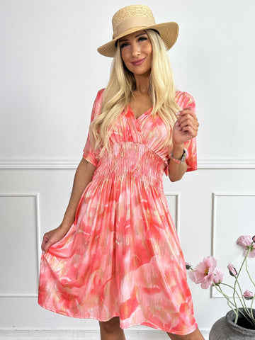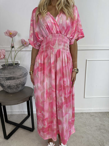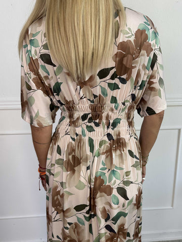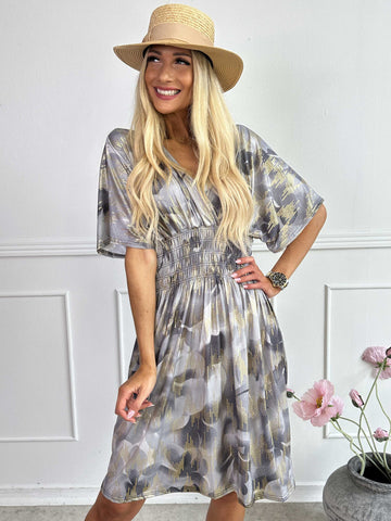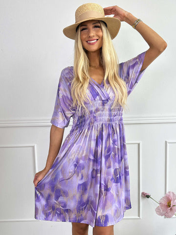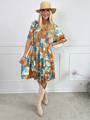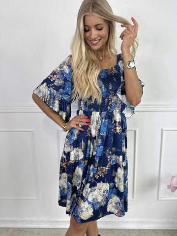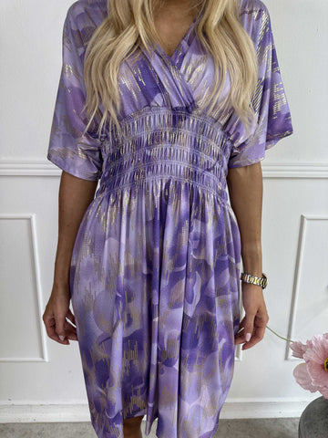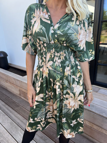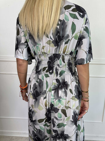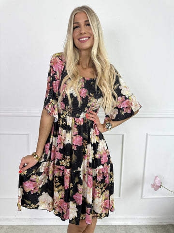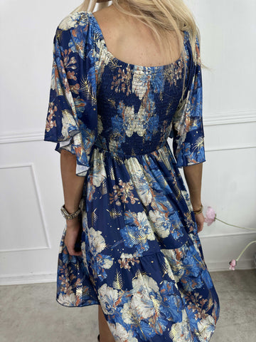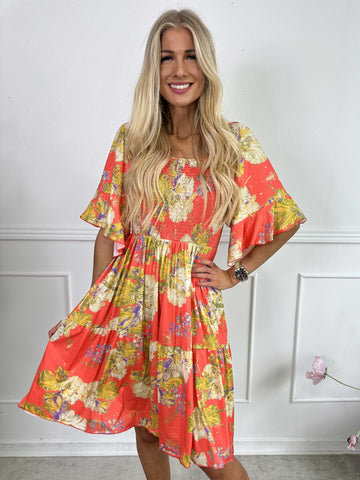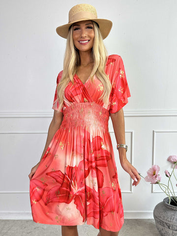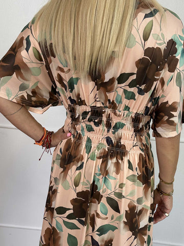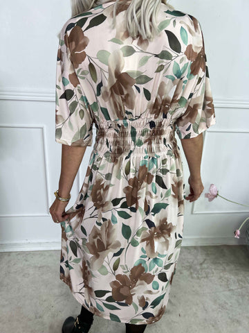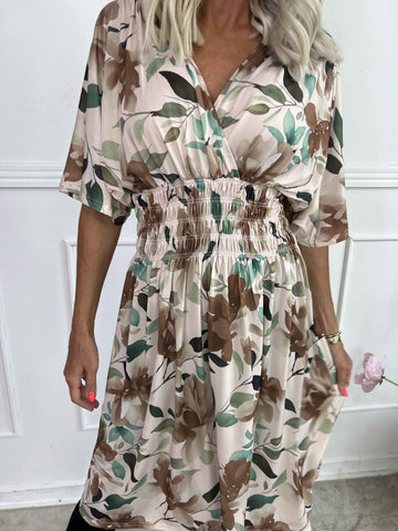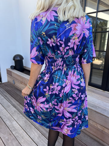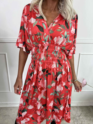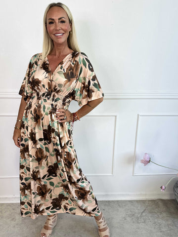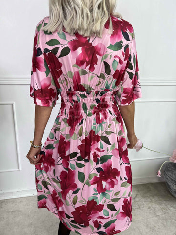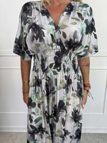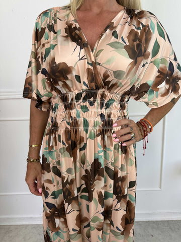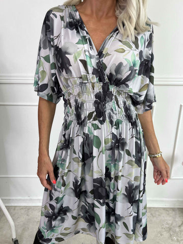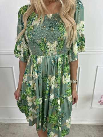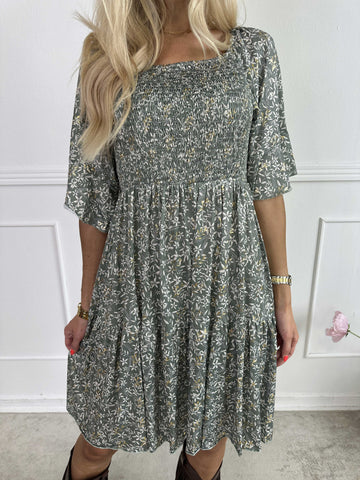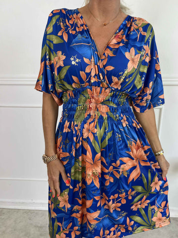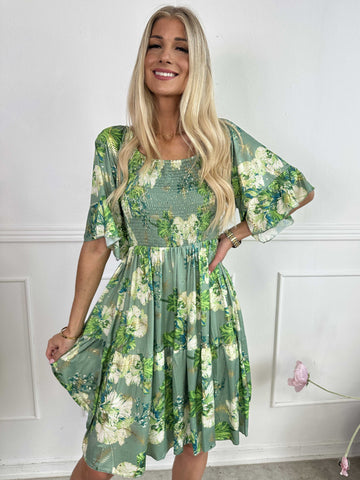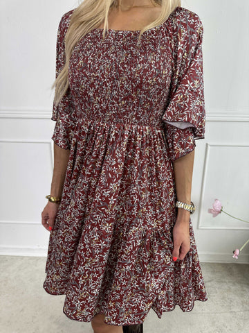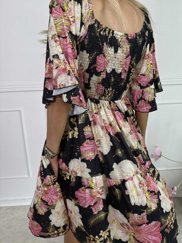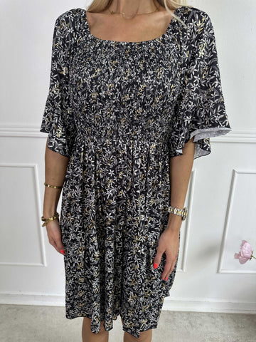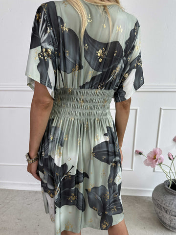Elna Beautiful Short - Blomstret elastisk kjole med smock over brystet