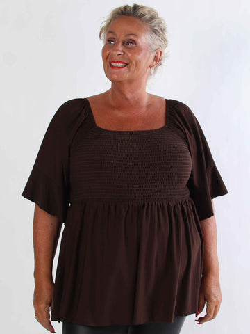 Elna Plain Shirt - Elastisk plain plus size bluse med smock over brystet