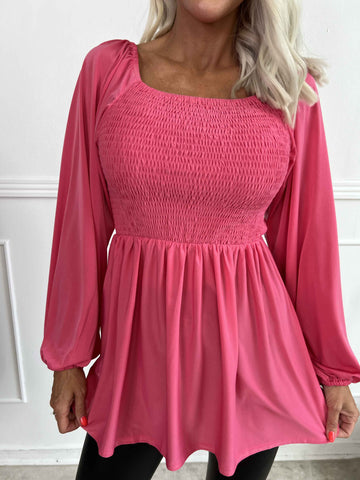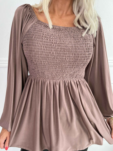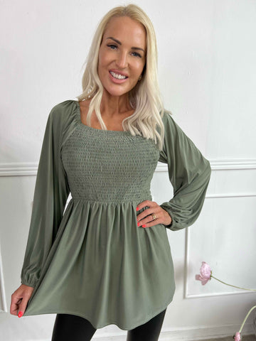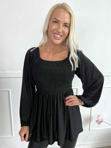 Elna Plain Shirt L/S - Elastisk bluse med smock over brystet