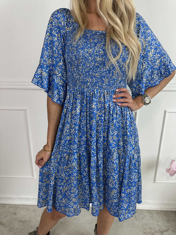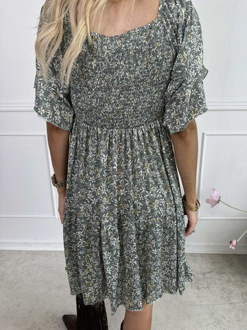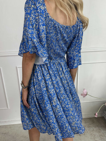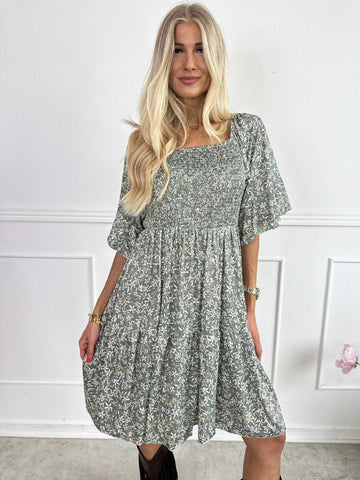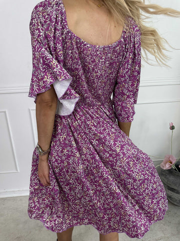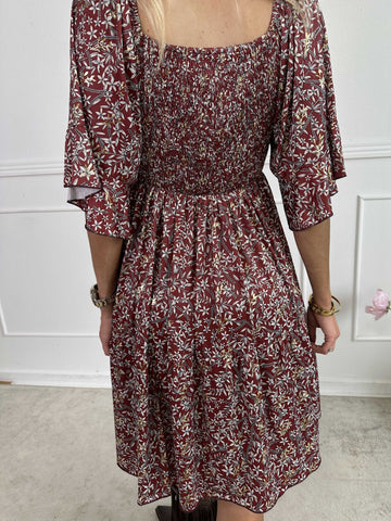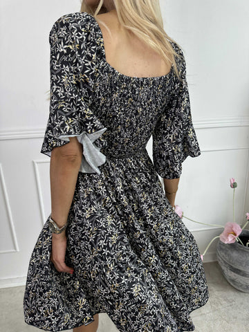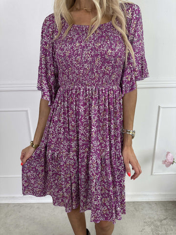 Elna Small Flower Short - Blomstret elastisk kjole med smock over brystet