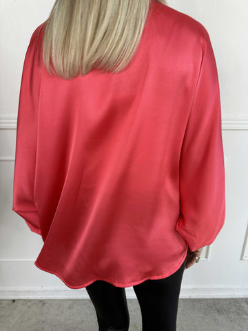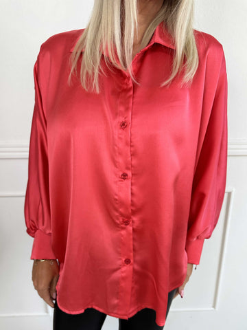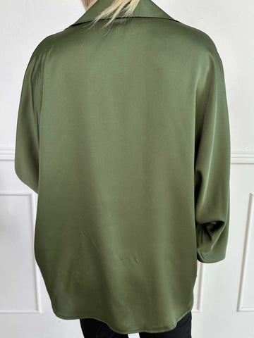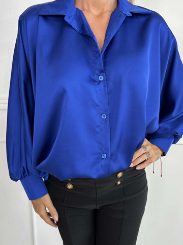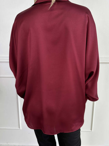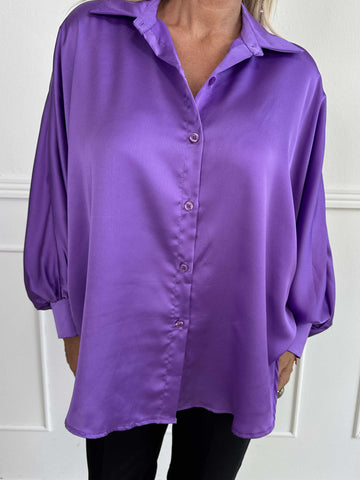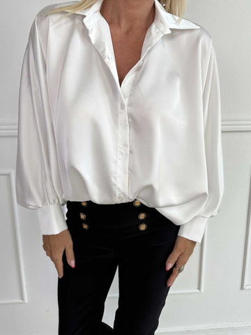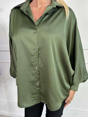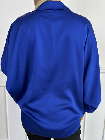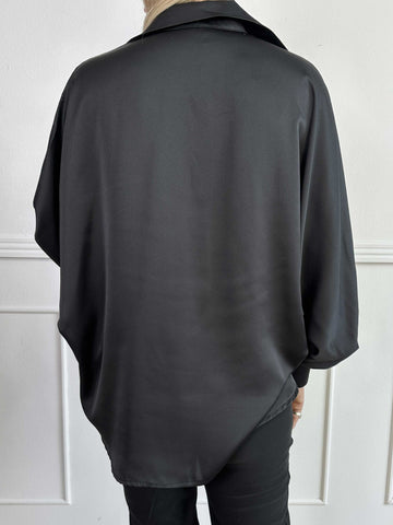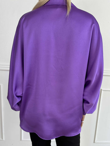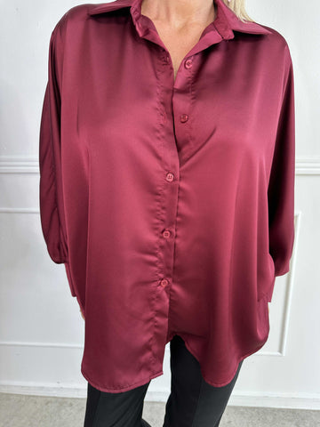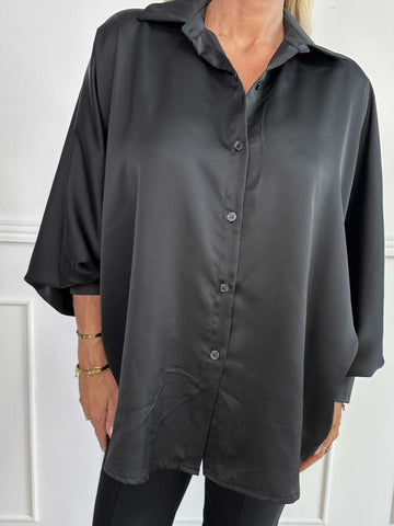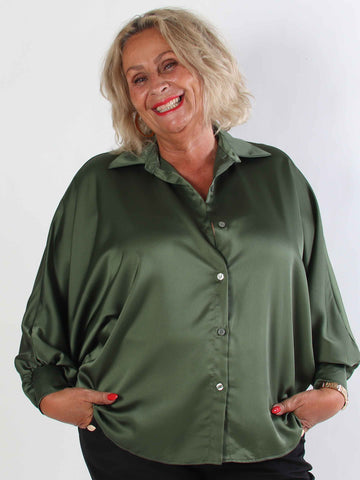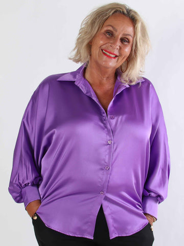 Feliciti - Shiny plus size skjorte med flagermusærmer