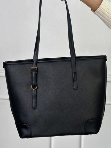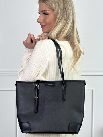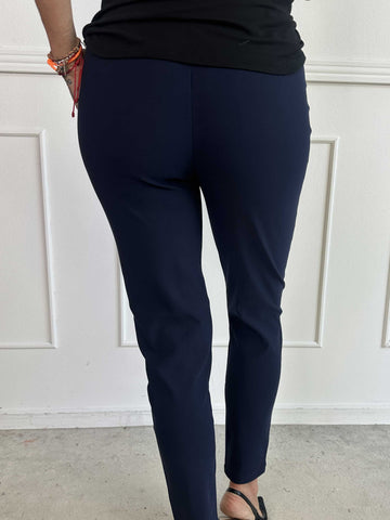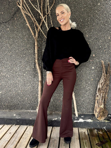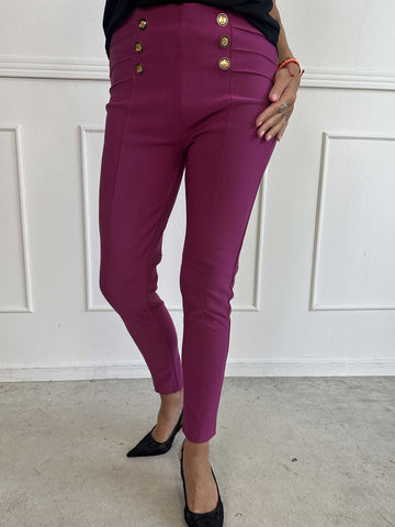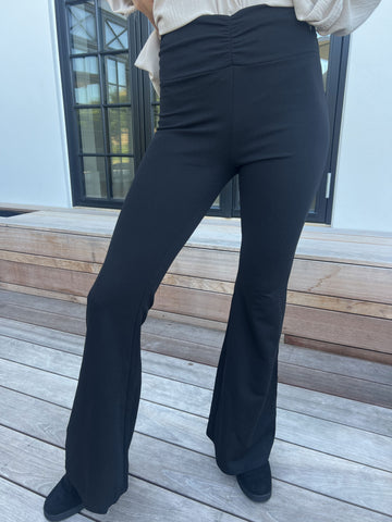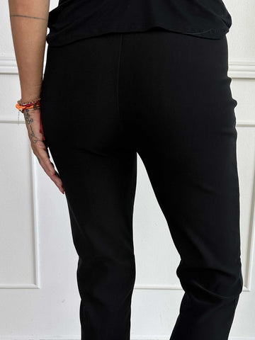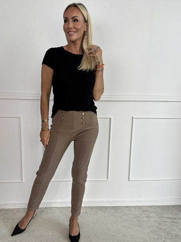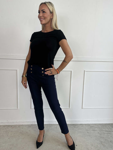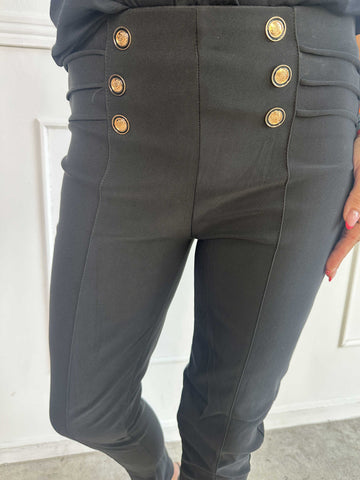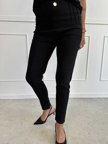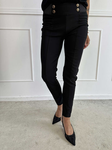 Idalia - Sorte bløde leggings med knapper og bred elastikkant i livet