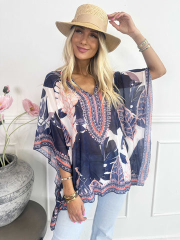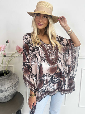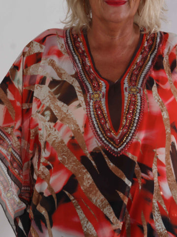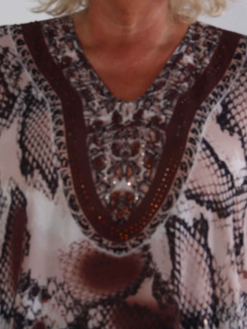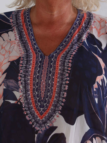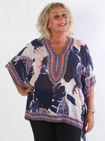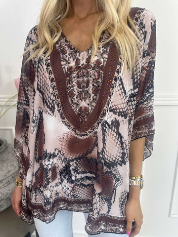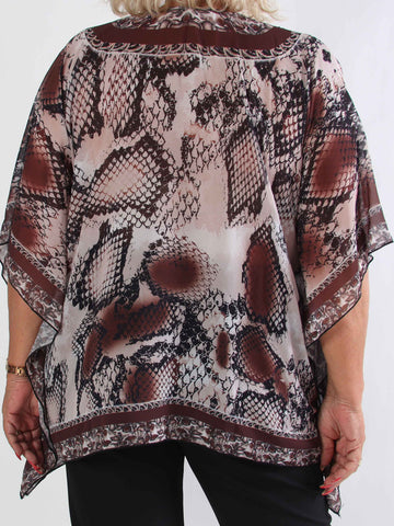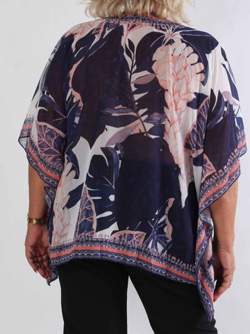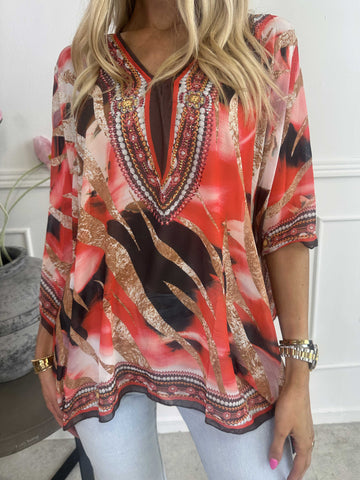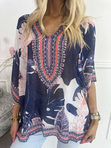 Harmonia - Mønstret plus size tunika i chiffon med similisten