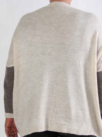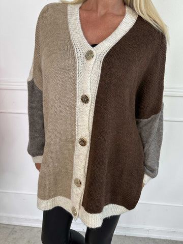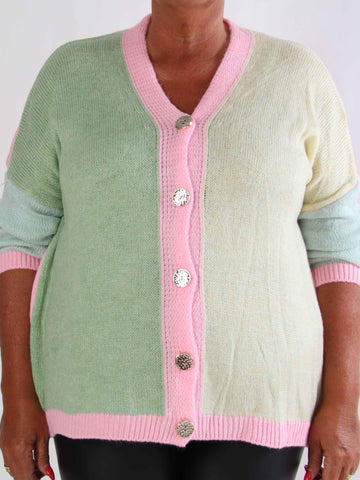 Hebe - Flerfarvet strikcardigan i plus size med guld knapper