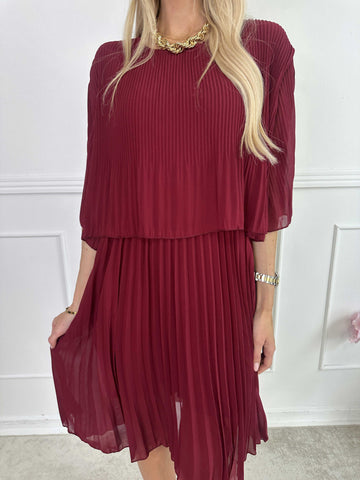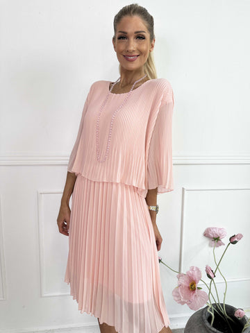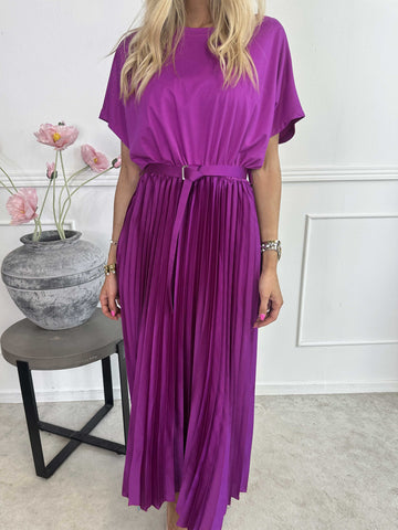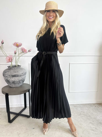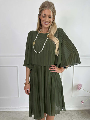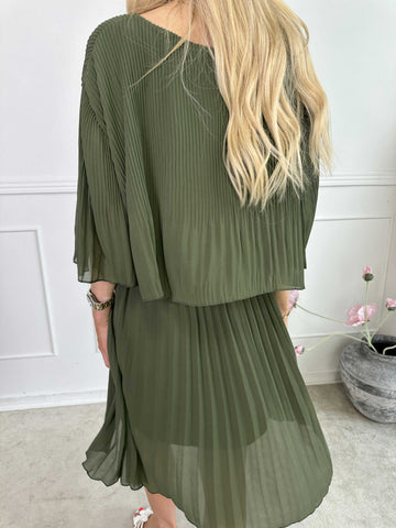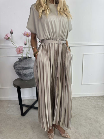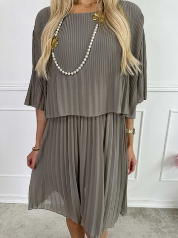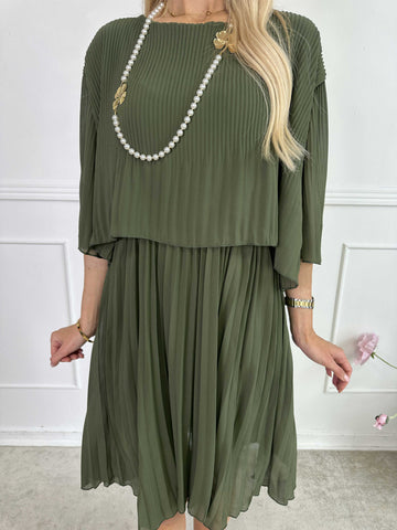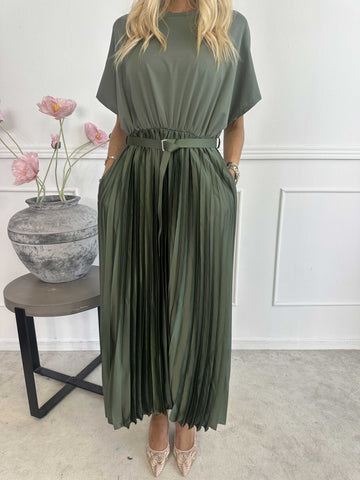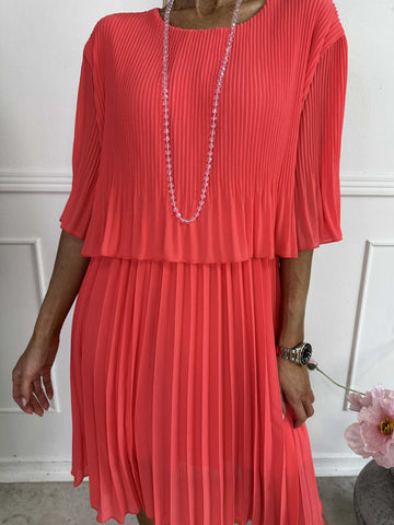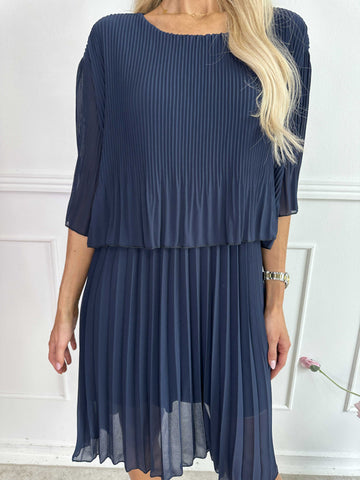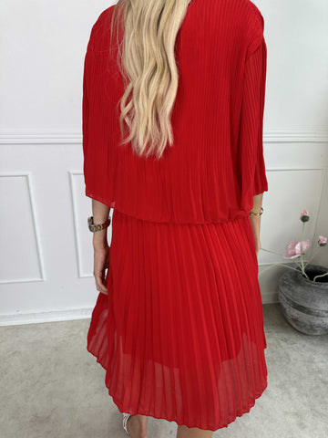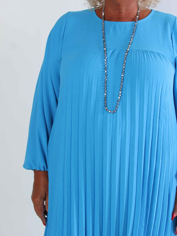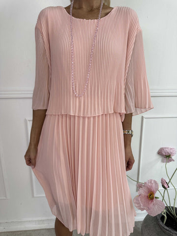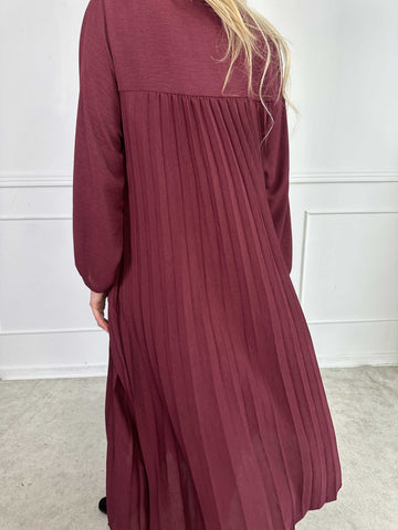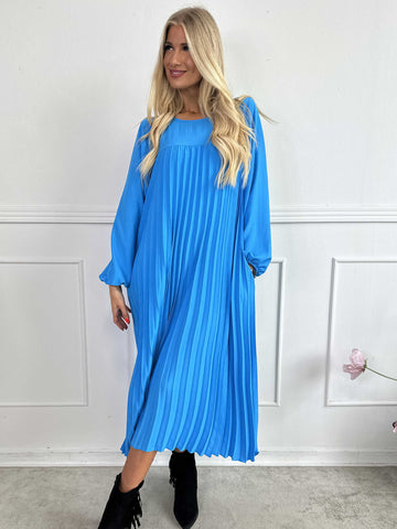 Nancy Long Sleeve - Lang kjole med plisseringer og lommer
