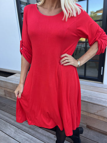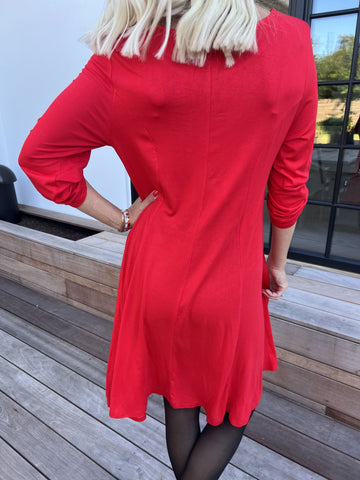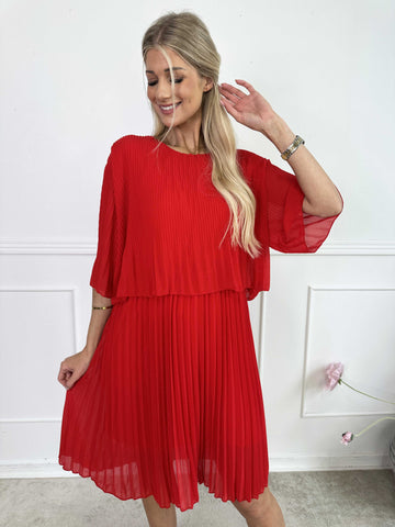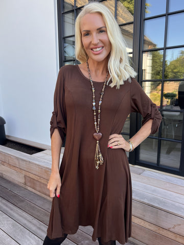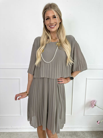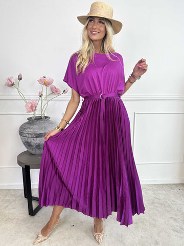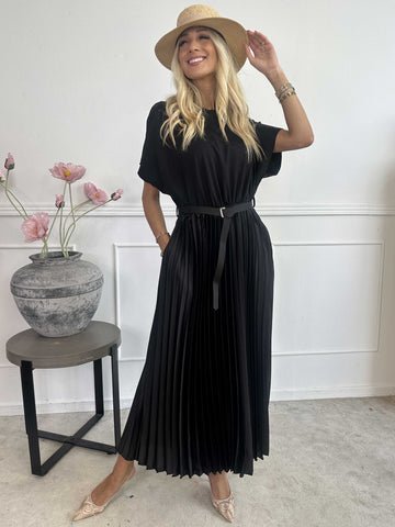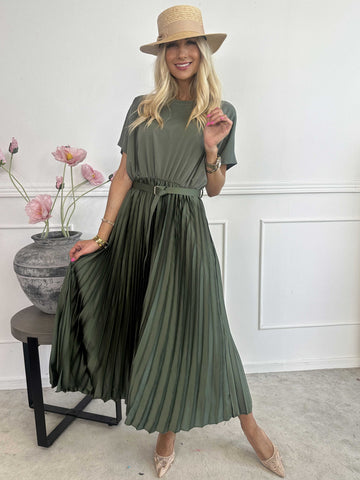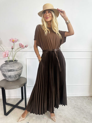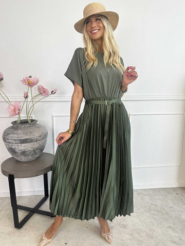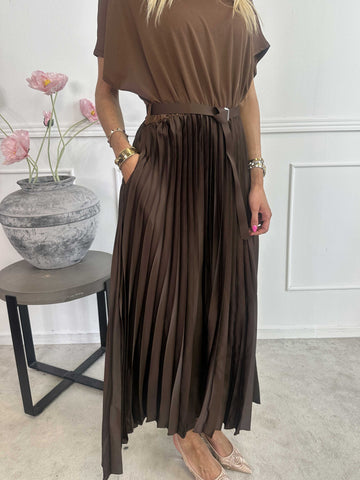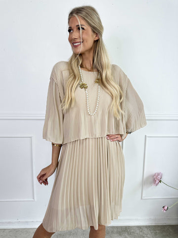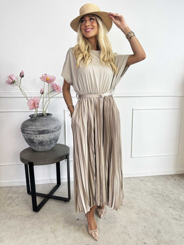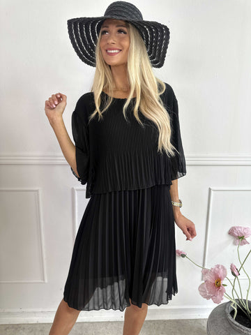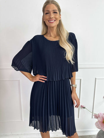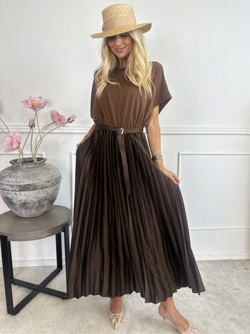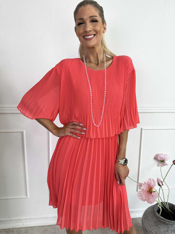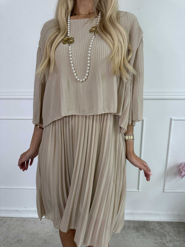Nancy Long Sleeve - Lang kjole med plisseringer og lommer