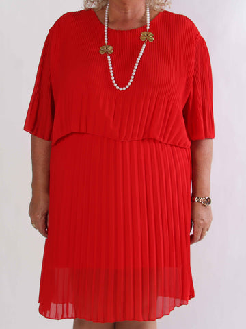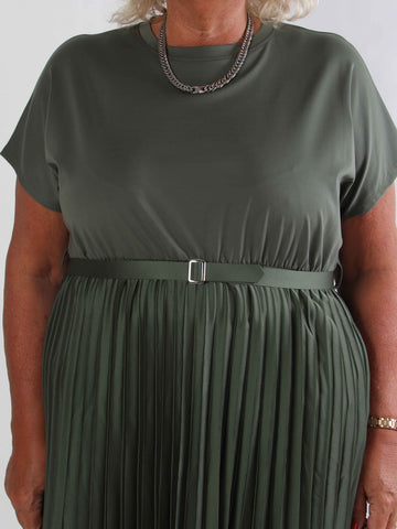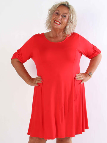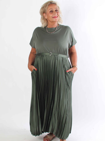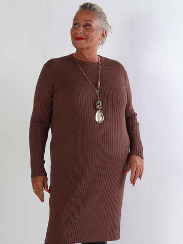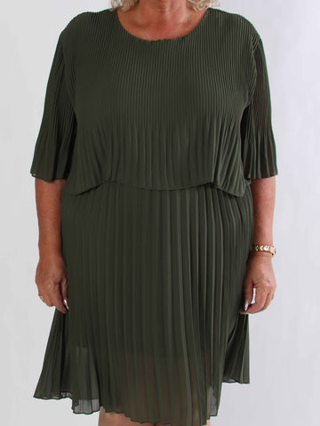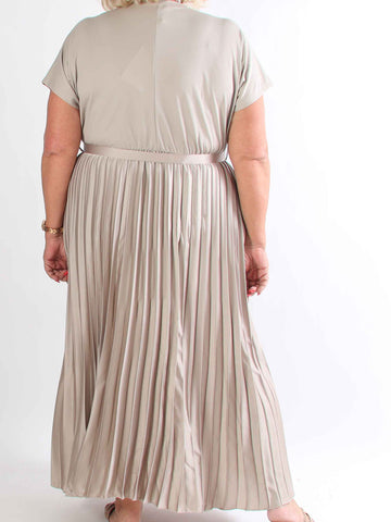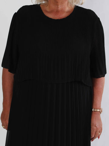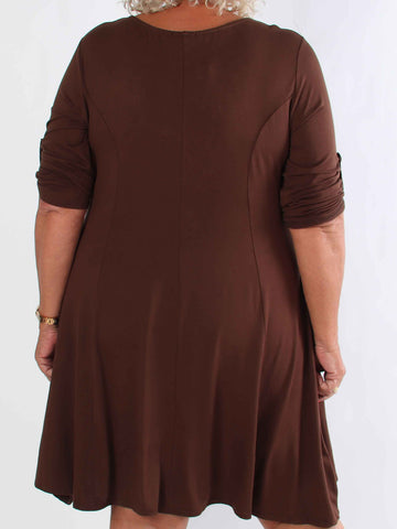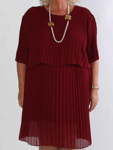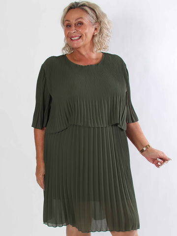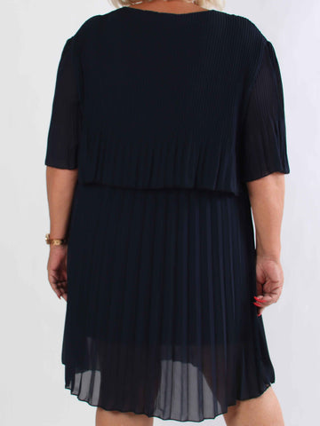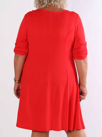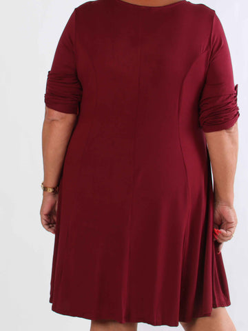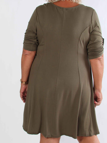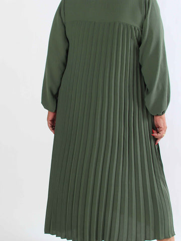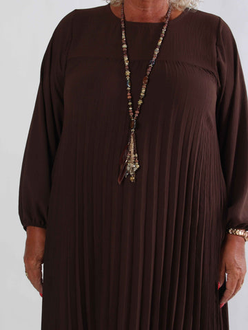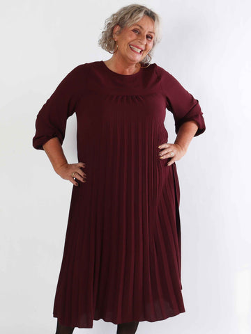 Nancy Long Sleeve - Lang plus size kjole med plisseringer og lommer