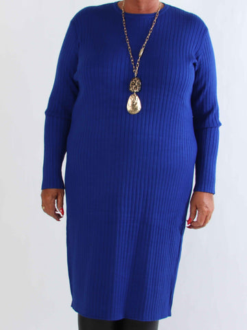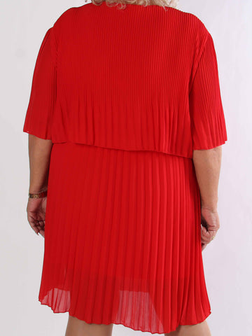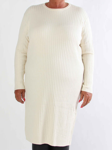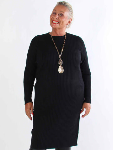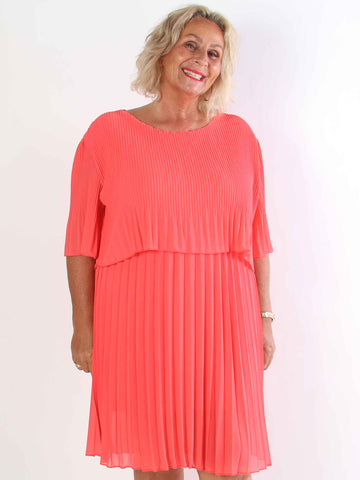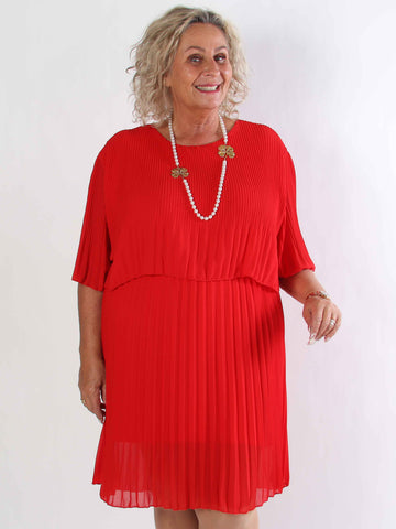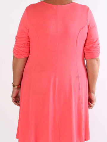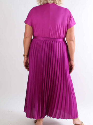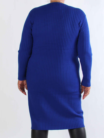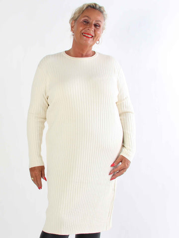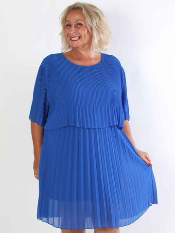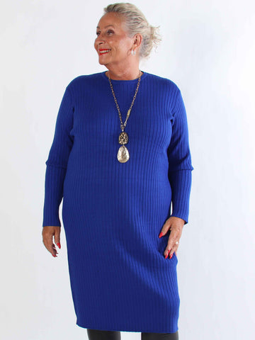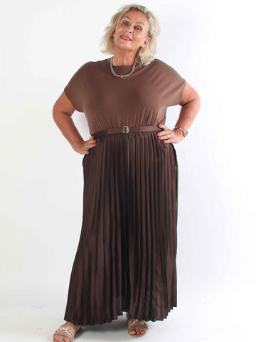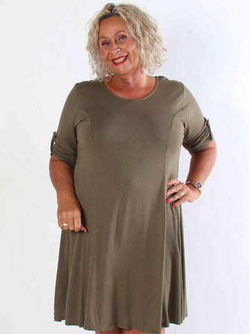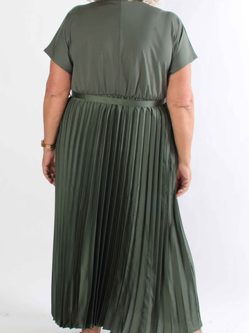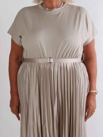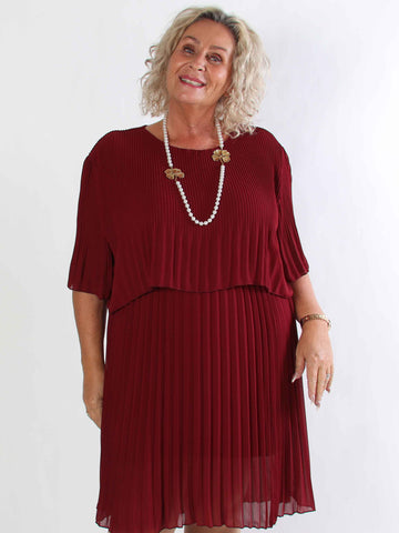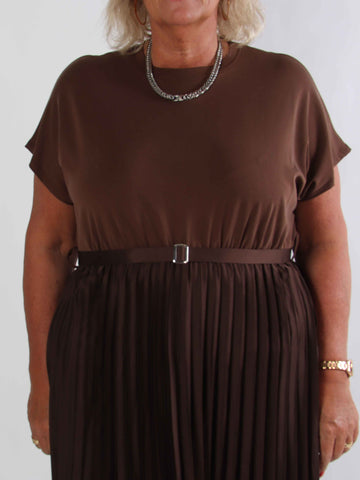 Nancy Long Sleeve - Lang plus size kjole med plisseringer og lommer