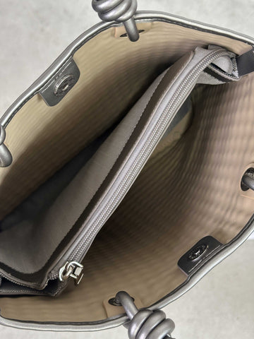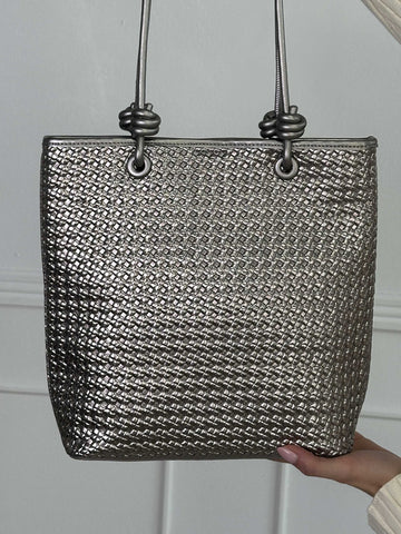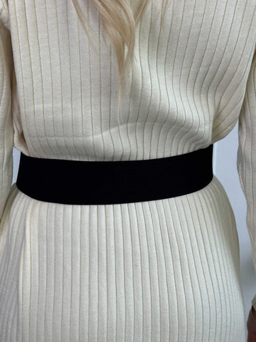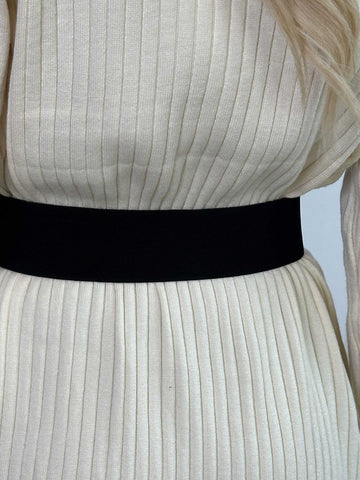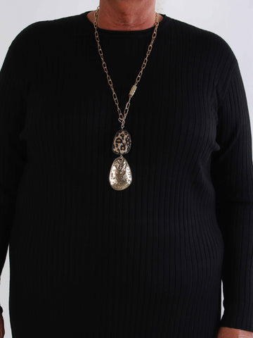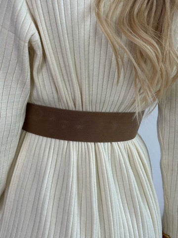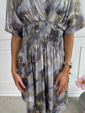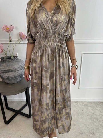 Milano Gold Midi - Elastisk kjole med guld dutter og lag på lag look