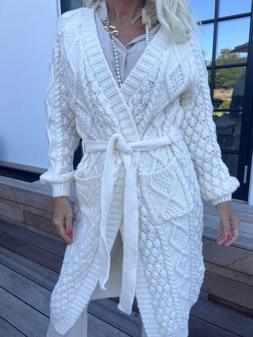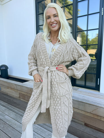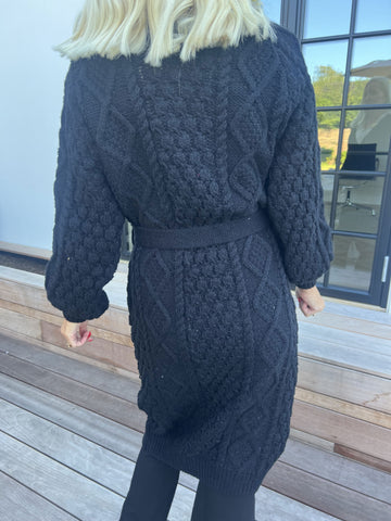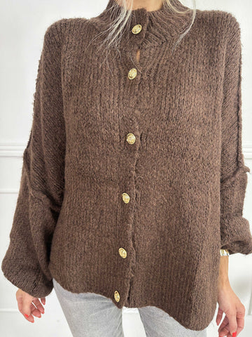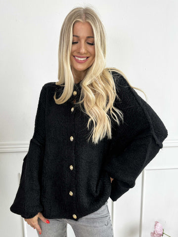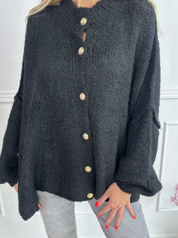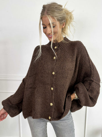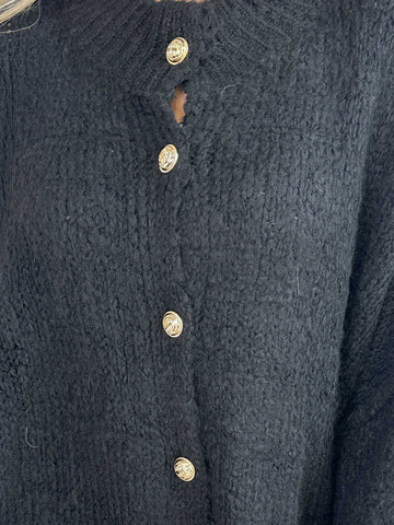 Olrun - Strikcardigan med ballonærmer og guld knapper