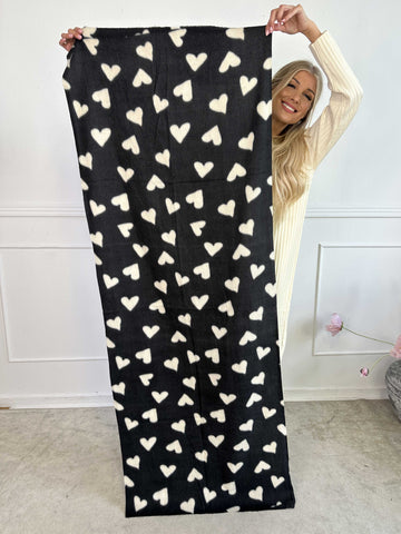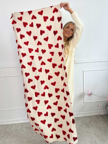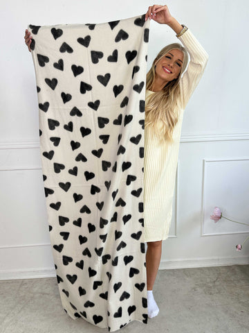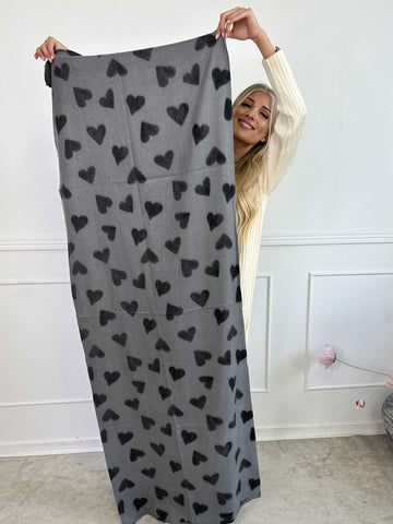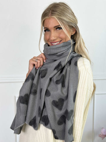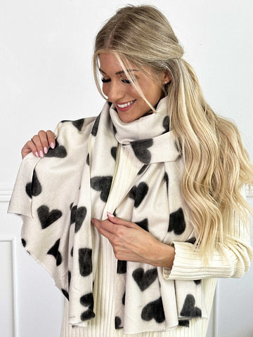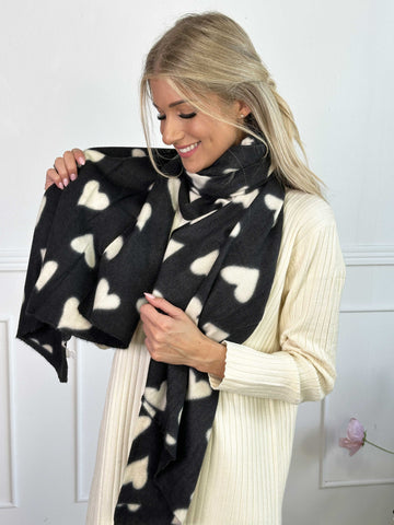 Linette - Blødt tørklæde med hjerter i viskose og uld